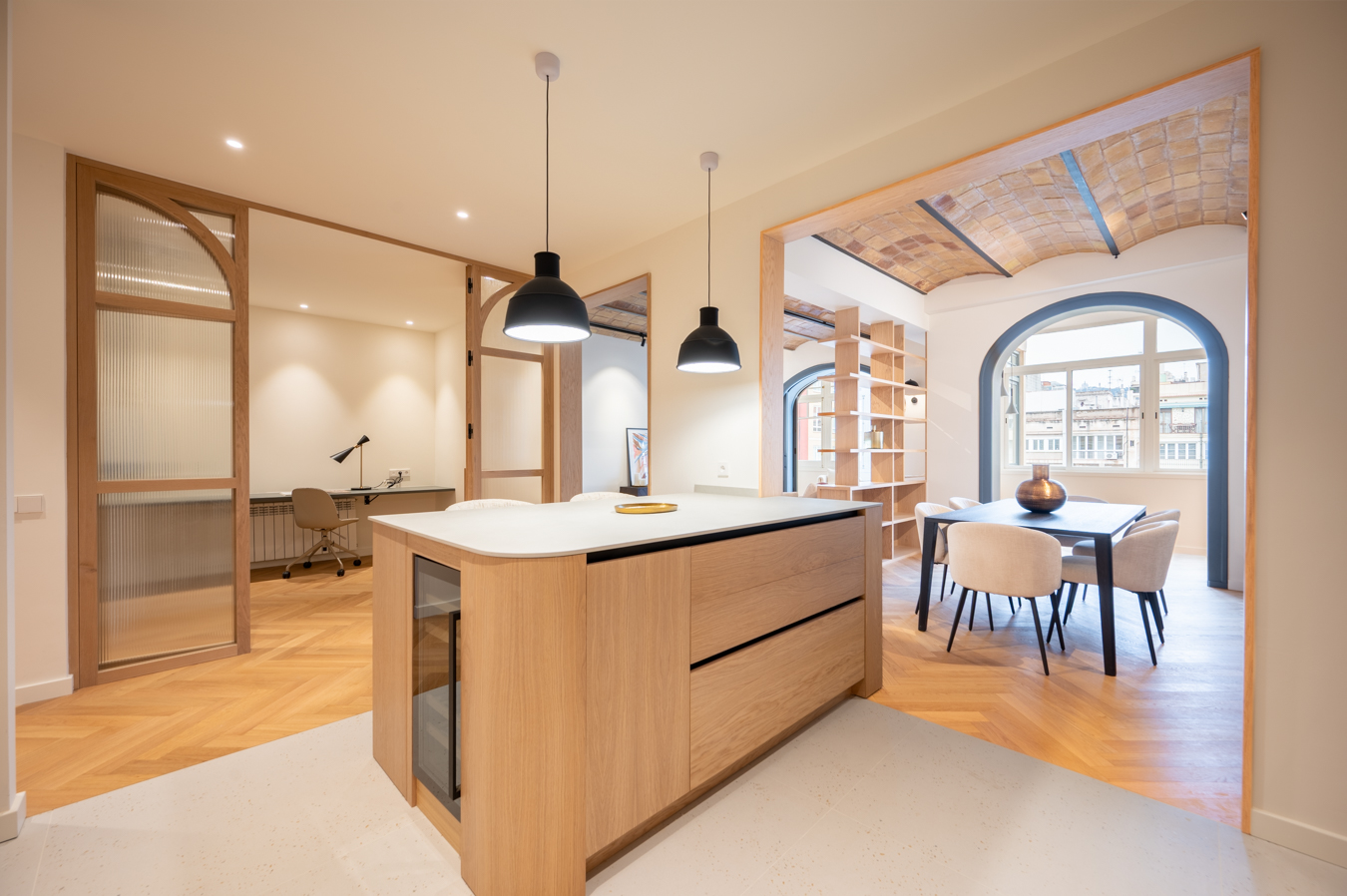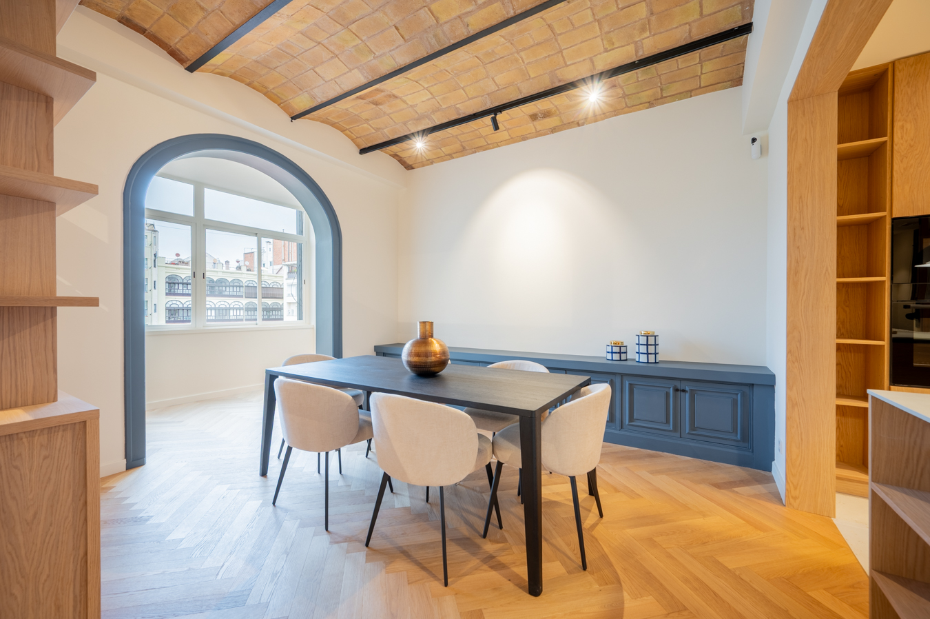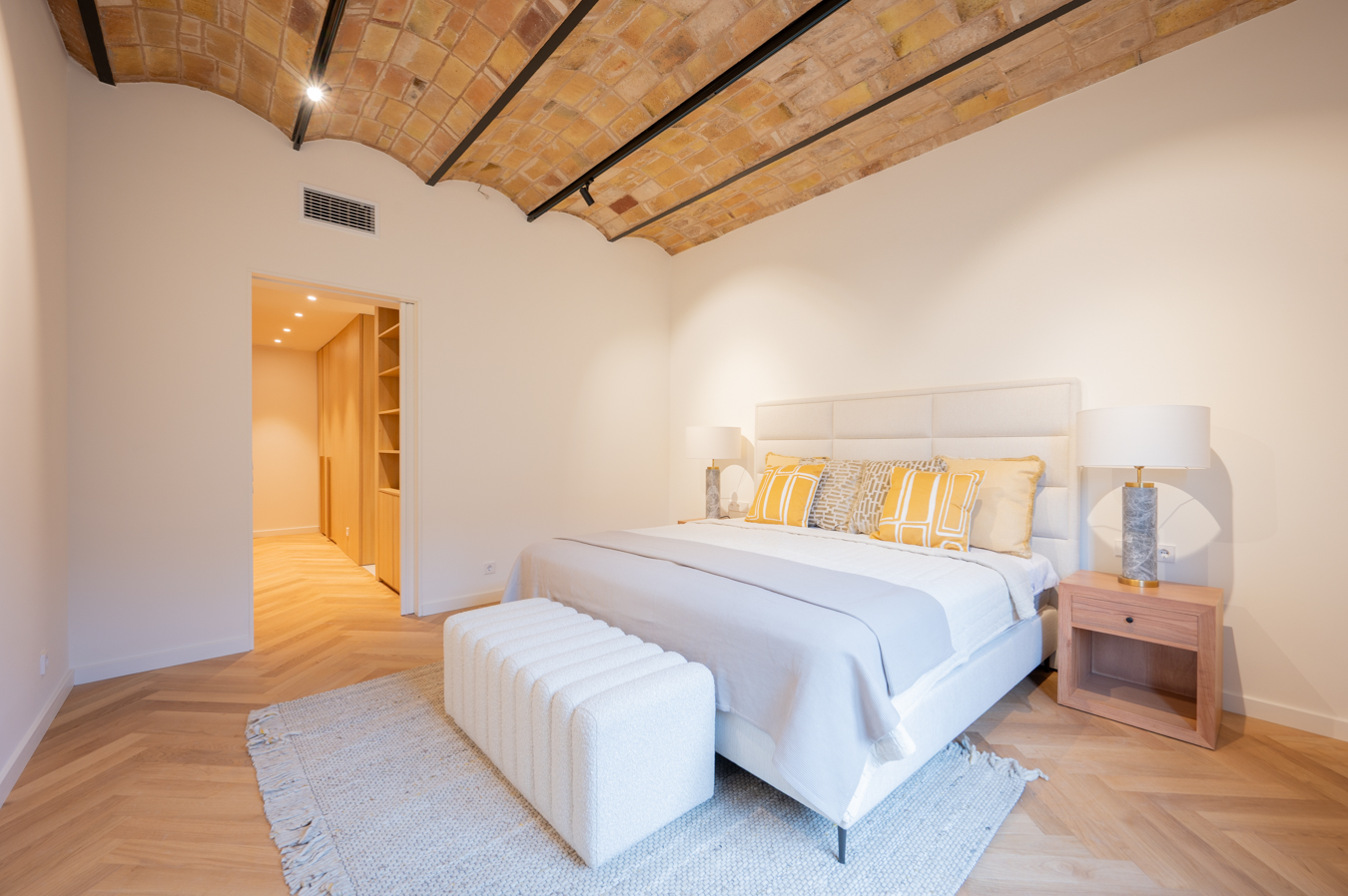 Les finitions et le design intérieur de cet appartement sont absolument fabuleux, mettant en valeur le magnifique plafond voûté catalan dans le salon et les chambres principales. L’appartement est équipé d’un parquet en bois naturel à chevrons, de l’air conditionné, de radiateurs au gaz naturel et d’armoires encastrées. Le prix comprend également un espace de stockage sur le toit-terrasse de l’immeuble.