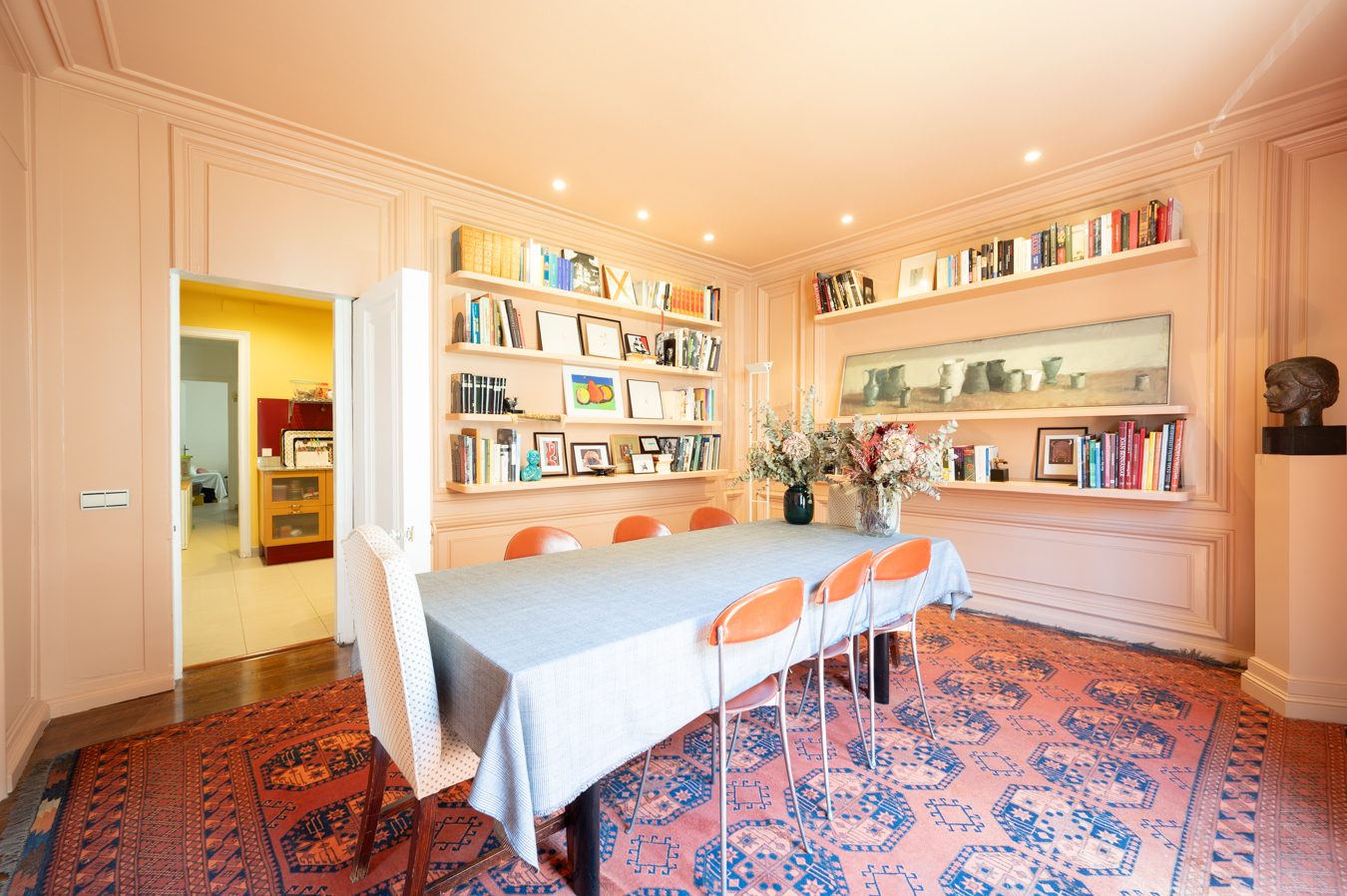 Esta espectacular vivienda con reforma de lujo tiene una amplísima superficie de 290 m2 construidos interiores y dos terrazas que suman 28 m2. Está ubicada en la parte alta de la Dreta del Eixample, a pocos pasos de la Avenida Diagonal y del Passeig de Sant Joan, y cerca del Passeig de Gràcia, así como de los barrios de Gracia y La Sagrada Familia. El piso está en la 5ª planta de una finca clásica en chaflán. Tiene dos entradas. La zona de día es un impresionante espacio que integra salón-comedor, cocina abierta con barra central, zona office con vinoteca y un cuarto de almacenaje. Todo el ambiente disfruta de una impresionante luz natural gracias a su excelente orientación sur. El salón-comedor tiene salida a una agradable terraza con maravillosas vistas de la ciudad, el lugar perfecto para tomar algo, desayunar, comer, estar con tus seres queridos o simplemente descansar. La zona de noche tiene 4 dormitorios dobles y 3 cuartos de baño. El maravilloso dormitorio principal tiene acceso a una segunda terraza que da a la calle, vestidor y cuarto de baño privado. De los otros dormitorios, dos son también exteriores y luminosos y uno es interior. El piso está equipado con los mejores materiales: suelos de parquet, aire acondicionado frío/calor por conductos, armarios empotrados y electrodomésticos de alta gama. La finca data de 1940, tiene una escalera representativa y dispone de 2 ascensores y servicio de conserje. El precio incluye un trastero de 9 m2. Hay plazas de parking en alquiler en la misma finca. Los alrededores de este piso te ofrecen un sinfín de servicios y comercios, desde tiendas de barrio hasta boutiques de primeras marcas; una amplia oferta de restaurantes; el ocio y los bares del barrio de Gràcia; y una excelente comunicación mediante transporte público, con la estación de metro Verdaguer a escasos metros. No dudes en contactar con Bcn Advisors para visitar esta vivienda.