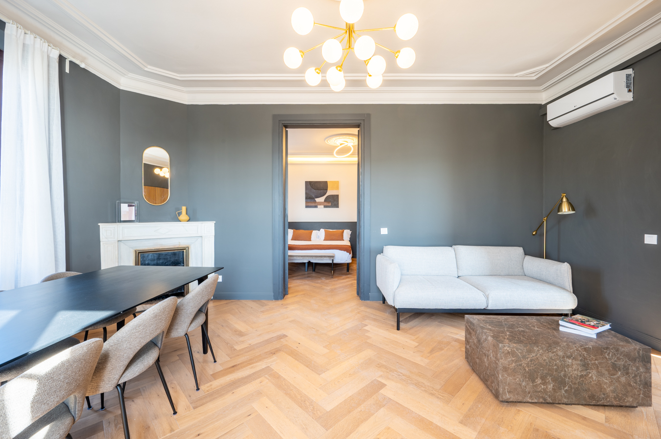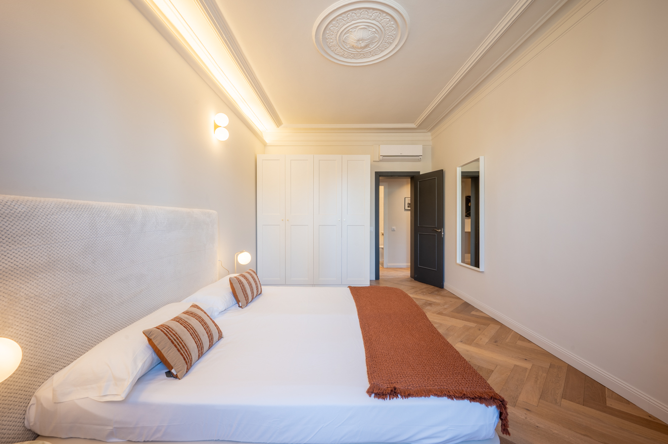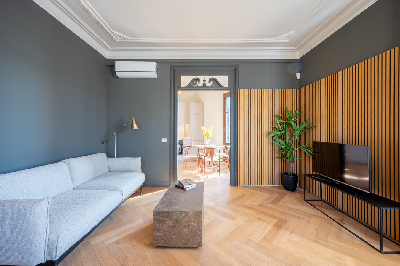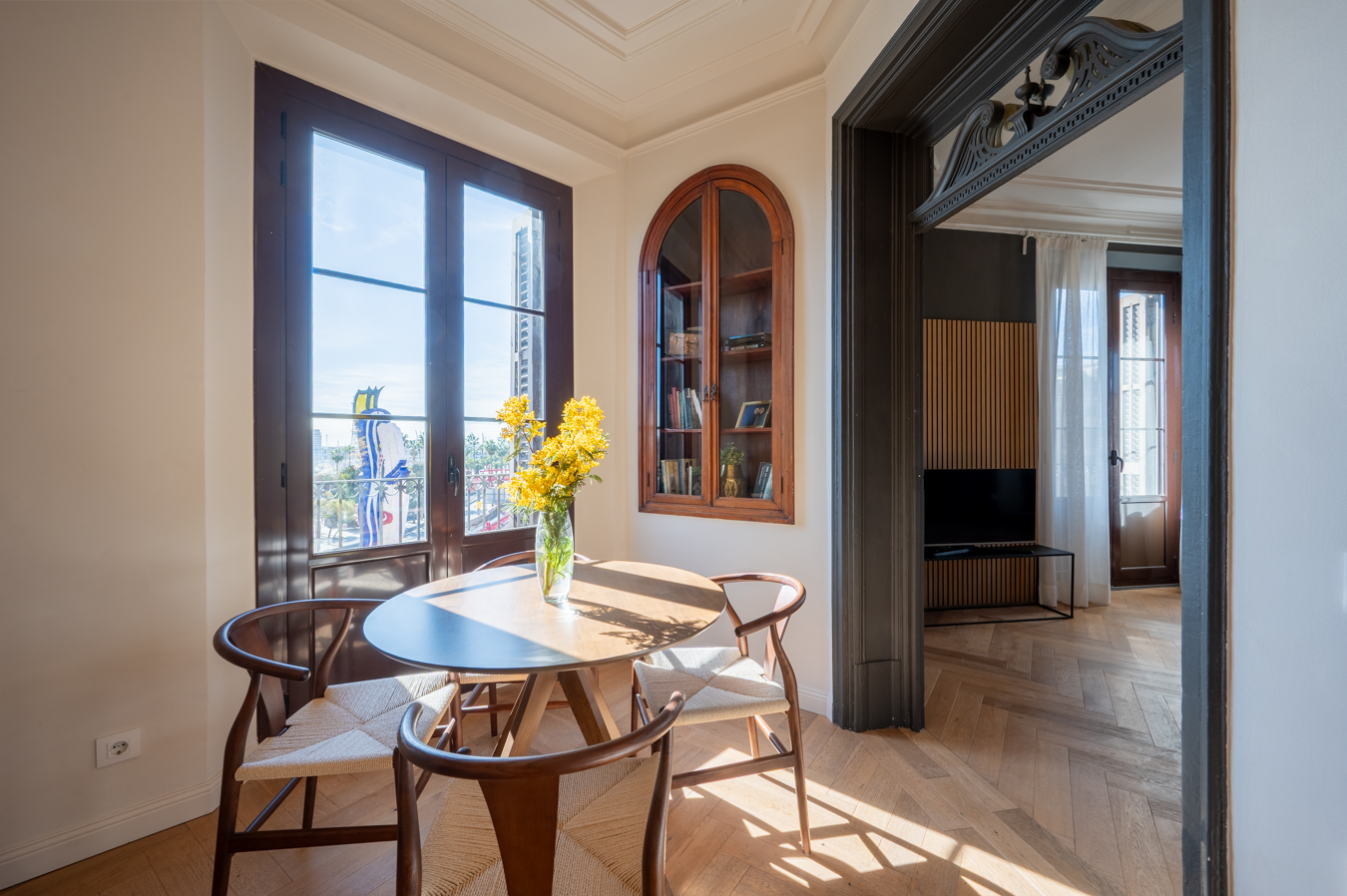 Este excepcional piso se sitúa en la calle Casanova, a escasos metros de la recientemente peatonalizada Consell de Cent, una de las arterias más atractivas y cotizadas del Eixample. Está rodeada de zonas verdes, cafeterías y una cuidada oferta gastronómica. Una ubicación que combina a la perfección la calma de un entorno residencial con la energía vibrante del centro de Barcelona. La vivienda está en la primera planta de una finca regia con ascensor. Tiene 130 m2 construidos interiores y una terraza de 25 m2. La distribución es cómoda y funcional. Un amplio salón con acceso a una terraza orientada al este se convierte en el corazón de la vivienda, acompañado por una cocina semiabierta con zona de comedor y salida a un segundo patio que incorpora espacio de lavadero. La terraza, con suelo de madera natural, es un oasis de tranquilidad en pleno centro. La zona de noche ofrece una generosa suite principal de más de 20 m² con baño privado, además de dos dormitorios dobles que comparten un baño completo. En la entrada se dispone también un aseo de cortesía. Todas las habitaciones cuentan con armarios empotrados a medida que optimizan el almacenamiento. La vivienda ha sido totalmente renovada, respetando y poniendo en valor los elementos originales, que conviven con acabados contemporáneos de alta calidad. Destacan los techos altos de 3,4 metros con bóveda catalana, las molduras decorativas, los suelos hidráulicos originales recuperados combinados con parquet natural en espiga y los amplios ventanales que garantizan una excelente entrada de luz durante todo el día. La propiedad ha sido equipada con nuevas carpinterías de doble acristalamiento, lo que garantiza un excelente aislamiento térmico y acústico, aportando confort y tranquilidad en pleno centro urbano. En las inmediaciones hay un parking con plazas de alquiler disponibles. Una vivienda lista para entrar a vivir que combina carácter histórico, diseño contemporáneo y una ubicación privilegiada en una de las zonas más demandadas de Barcelona.