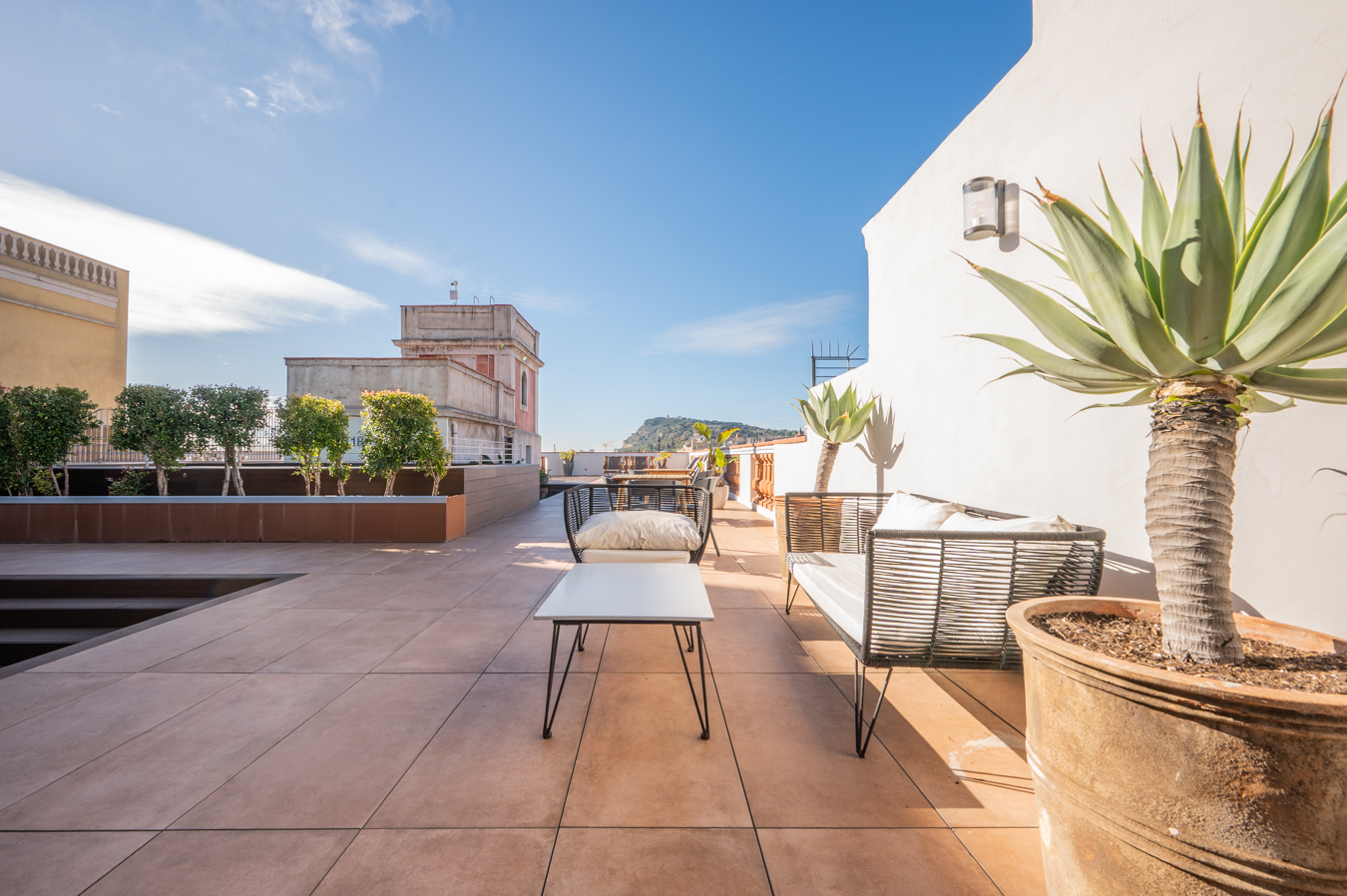 La finca destaca por albergar una de las terrazas comunitarias más impresionantes de la ciudad: un auténtico oasis urbano con solárium, piscina, zonas chill out, área de barbacoa y vistas panorámicas al Mediterráneo, la montaña y el skyline barcelonés. El edificio, catalogado como Bien de Interés Local, data de 1850, fue rehabilitado integralmente en 2013 y actualizado nuevamente en 2025, ofreciendo el equilibrio perfecto entre historia y confort contemporáneo.