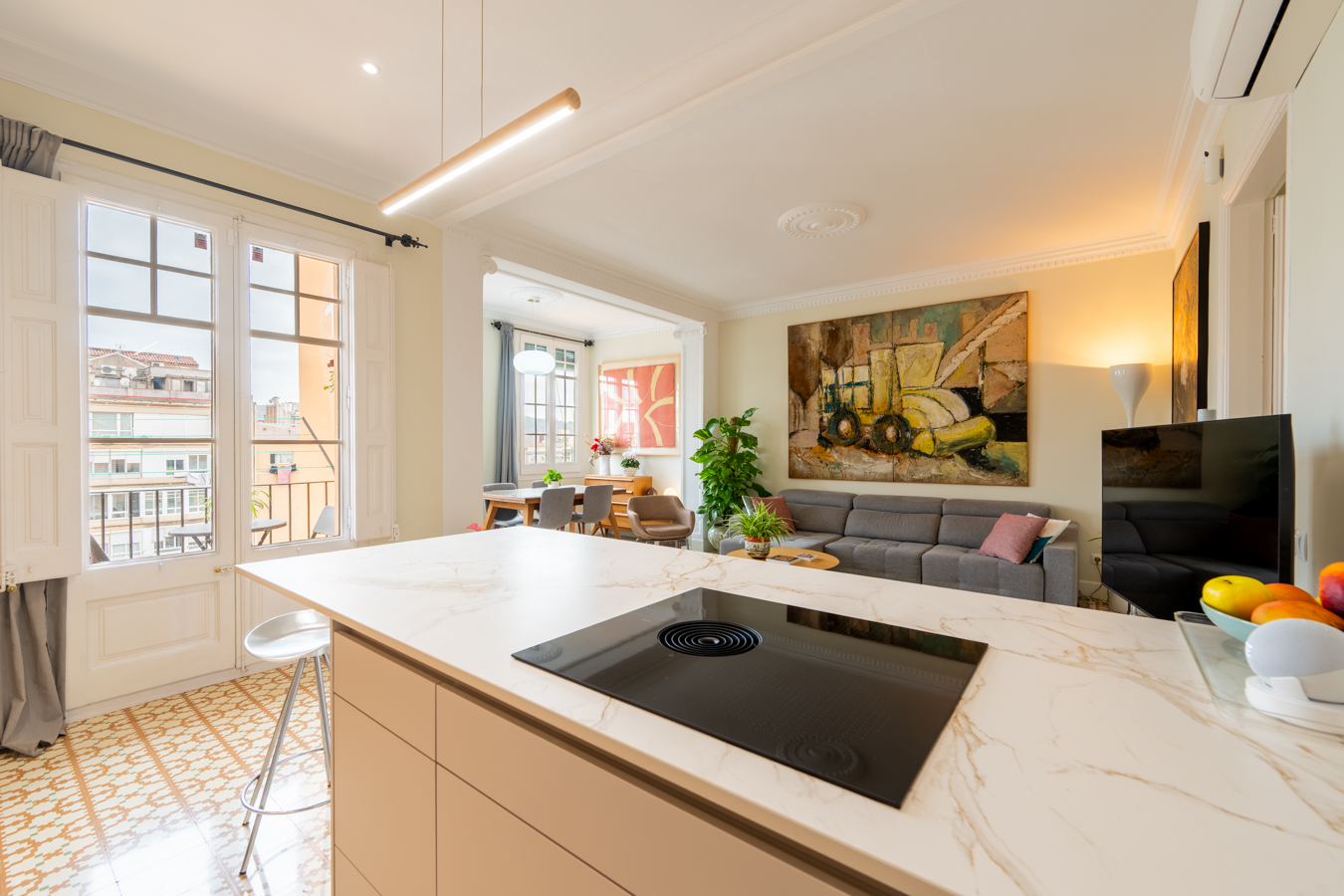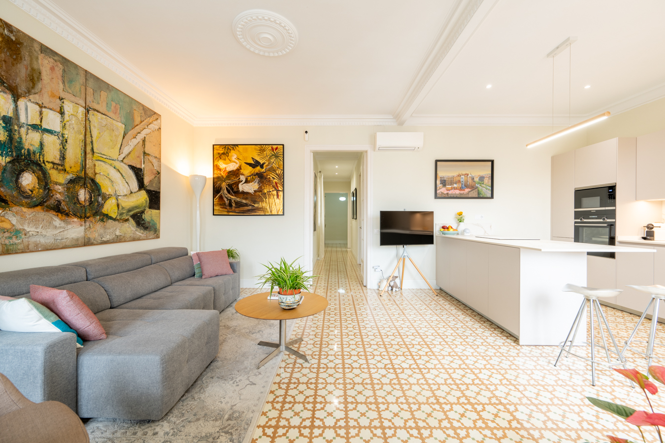 Tranquilo y luminoso piso reformado con elementos originales en Eixample