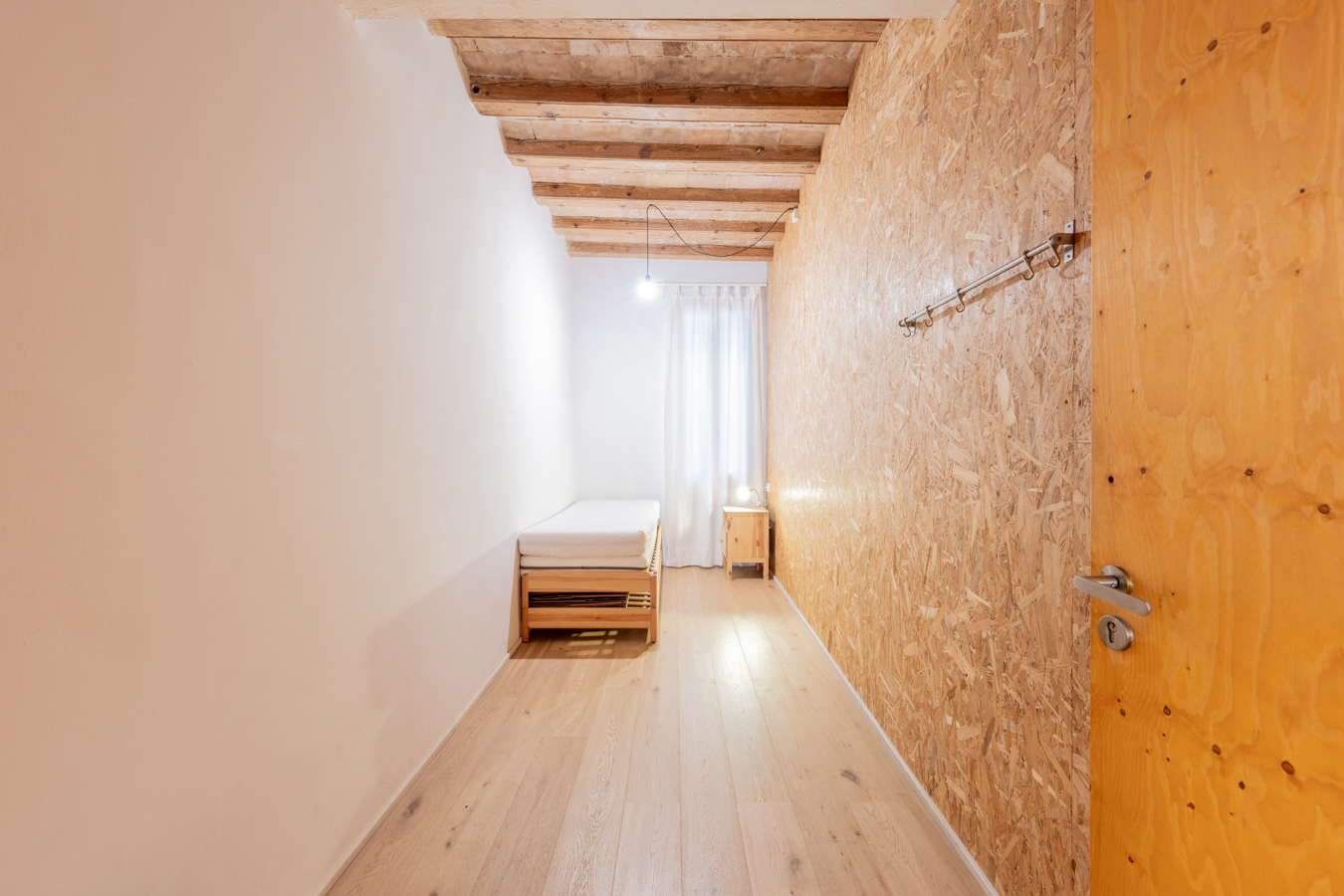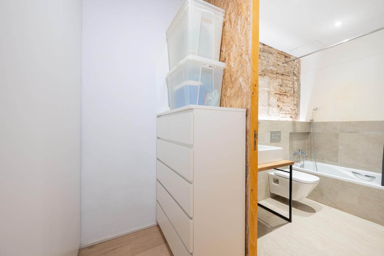 Este ático está a una calle de la Plaza Catalunya, en pleno centro de Barcelona. Se sitúa en un edificio histórico de principios del siglo XVIII. Su ubicación privilegiada te permitirá disfrutar de la historia de las calles y monumentos emblemáticos de Barcelona, numerosos comercios y servicios, bares, restaurantes y una excelente comunicación mediante transporte público. La propiedad tiene 101 m2 construidos interiores. El salón es muy acogedor con vistas hacia la calle y una galería que da al patio interior del edificio. Luego hay un pasillo distribuidor con armarios empotrados que nos lleva a la habitación principal, con vistas a un patio interior y mucha luz natural. A ambos lados del pasillo hay un cuarto de baño con bañera y ducha y una estancia que se usa como vestidor con más armarios. No obstante, existe la posibilidad de hacer 2 habitaciones y 2 cuartos se baño (ver propuestas de reforma en los planos). Esta propiedad mantiene elementos originales, como los techos de madera del siglo XVIII combinados con claraboyas que permiten la entrada de luz natural. La vivienda está equipada con suelos de madera, calefacción por radiadores y aire acondicionado por splits. Está en la 3ª planta real de un edificio sin ascensor. Actualmente, esta vivienda forma parte de un dúplex formado por dos entidades registrales independientes. En el momento de formalizar la venta, los propietarios realizarán la división correspondiente para que cada unidad quede correctamente independiente. No dudes en contactar con Bcn Advisors para solicitar una visita a este ático.