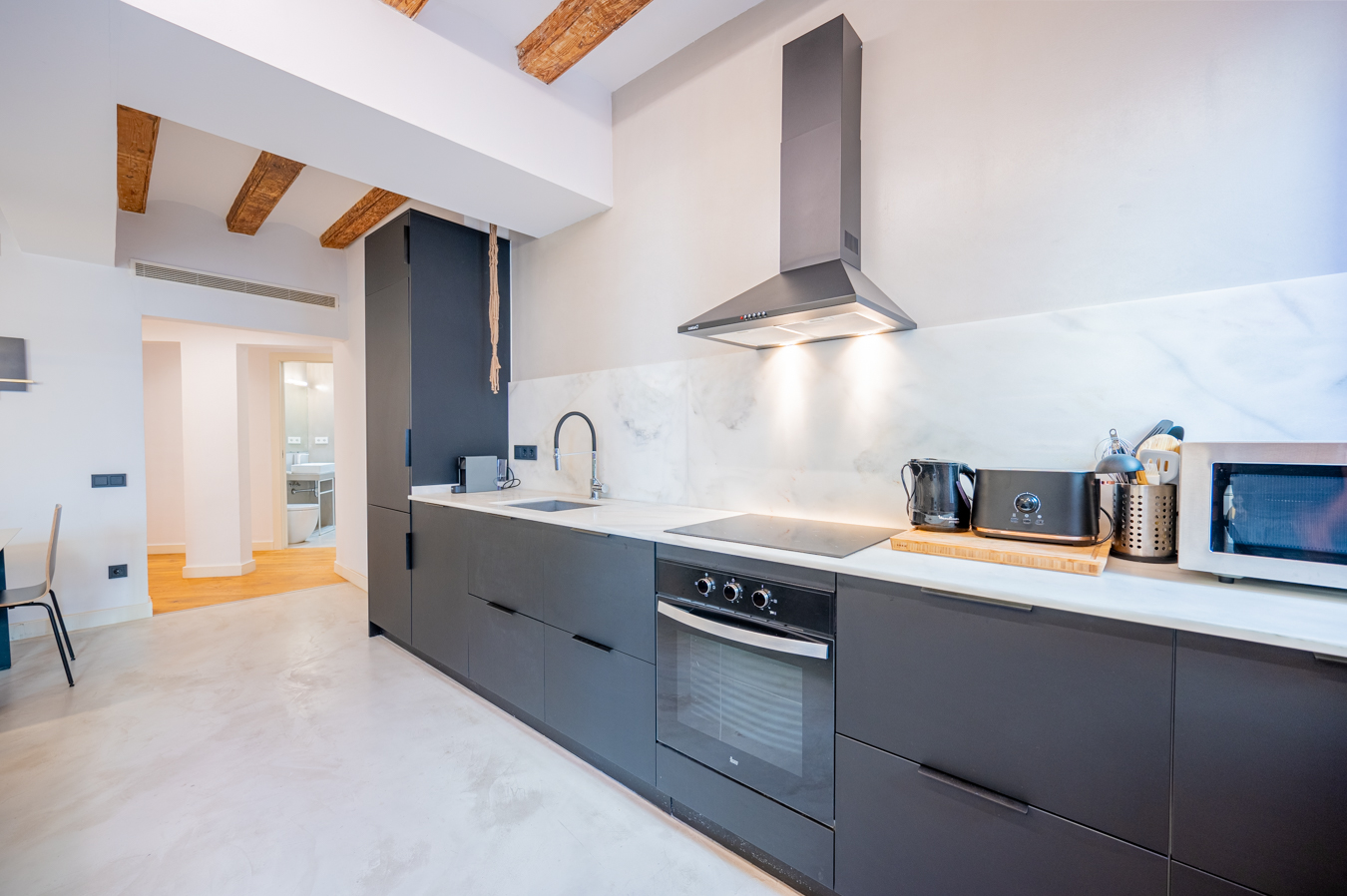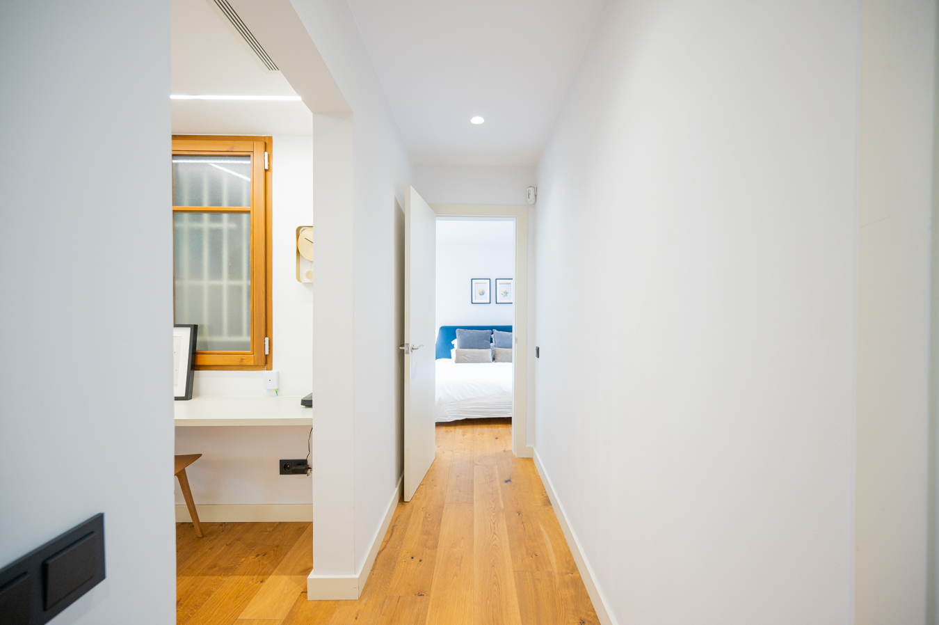 En una de las calles peatonales más serenas y con mayor encanto del Barrio Gótico, se encuentra esta vivienda excepcional recién reformada, donde la luz mediterránea, el diseño actual y la esencia histórica de Barcelona se combinan con absoluta armonía. Está a pocos minutos del Soho House Barcelona y del frente marítimo, con numerosos comercios, servicios y transporte público en los alrededores Ubicado en la cuarta y última planta de una finca rehabilitada sin ascensor, el piso disfruta de doble orientación, lo que garantiza luz natural durante todo el día y una notable sensación de tranquilidad. Las vistas abiertas y la presencia de dos agradables patios interiores refuerzan la calma y el confort, algo poco habitual en esta zona de la ciudad. La reforma ha sido diseñada con una clara intención: abrir los espacios, potenciar la luz y crear un hogar fluido, pensado tanto para el uso diario como para compartir momentos con invitados, sin renunciar a la intimidad. El corazón de la vivienda es un espacio diáfano que integra salón, comedor y cocina, ideal para largas sobremesas, encuentros espontáneos y una vida social activa. Los suelos de microcemento, combinados con mosaicos originales recuperados, aportan carácter y personalidad, manteniendo una estética sobria y atemporal. La cocina está totalmente equipada con electrodomésticos, incluyendo nevera para vinos. El piso tiene actualmente un dormitorio, luminoso y acogedor, que cuenta con armarios empotrados y mobiliario diseñado a medida, además de un singular ojo de buey que conecta visualmente con la zona de día y refuerza la sensación de amplitud. Existe la opción de crear un segundo dormitorio (ver segundo plano con la propuesta). La vivienda se vende amueblada. Conserva y realza elementos originales como vigas vistas, carpinterías y mosaicos hidráulicos, que dialogan con una línea contemporánea elegante y equilibrada. La iluminación empotrada, la selección de materiales de alta calidad y la atención al detalle reflejan una reforma cuidada y coherente. Una propiedad pensada para quienes desean vivir el pulso de la ciudad y, al mismo tiempo, llegar a casa y encontrar luz, silencio y belleza. Para quienes valoran los espacios bien diseñados, la calidad de los materiales y la posibilidad de disfrutar del hogar con amigos, sin renunciar a la tranquilidad ni a la privacidad.
