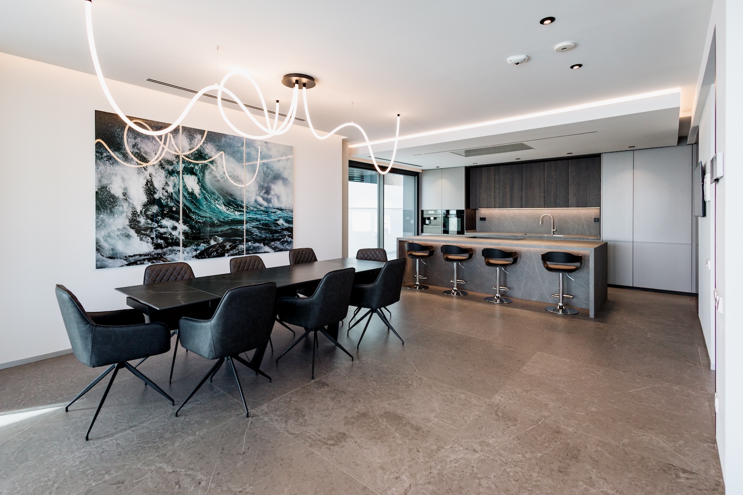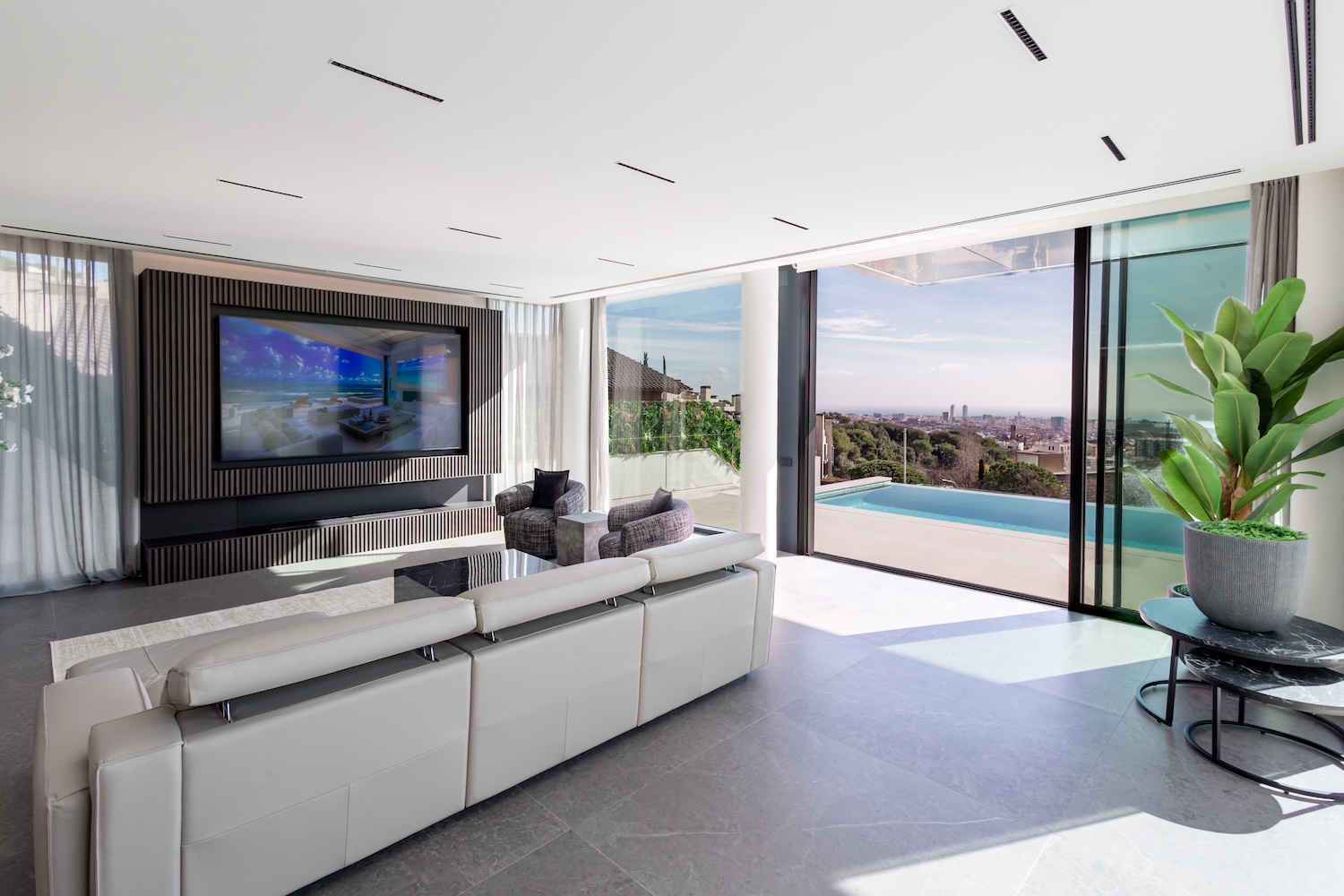 Entre sus espacios más destacados se encuentra una impresionante piscina infinita de agua salada climatizada, perfecta para disfrutar de las vistas abiertas al mar y al skyline de Barcelona durante todo el año. La propiedad también incluye sauna privada, así como una versátil zona de ocio que puede destinarse a sala de cine, gimnasio o sala de fiestas.