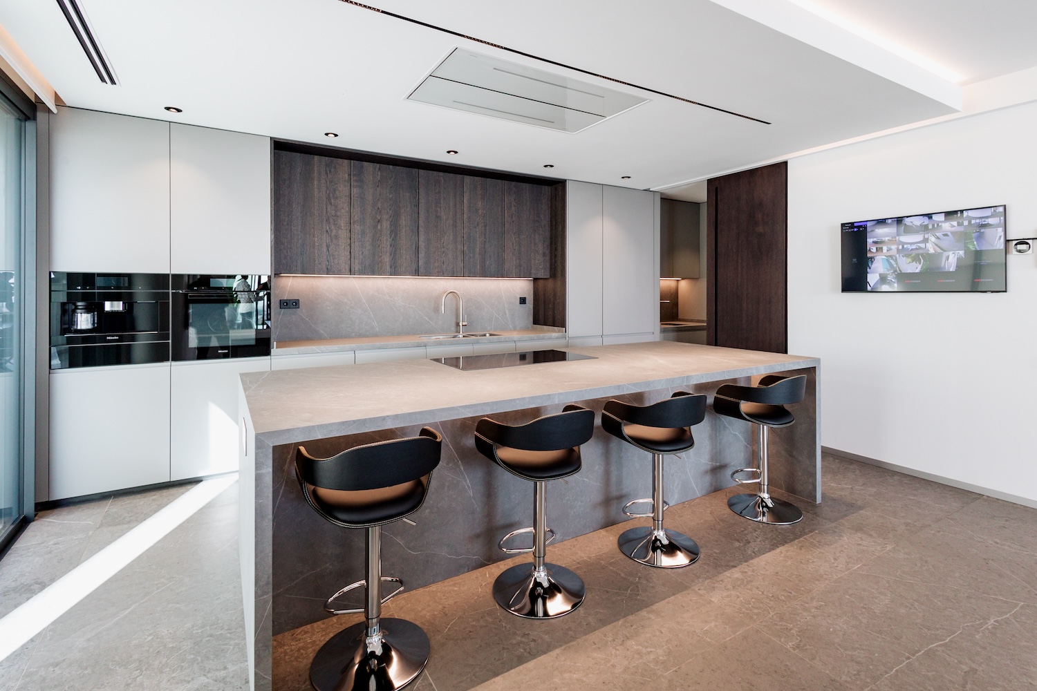 La cocina está equipada con electrodomésticos de alta gama de Miele, y varias estancias cuentan con elegantes chimeneas que aportan confort y calidez al ambiente.