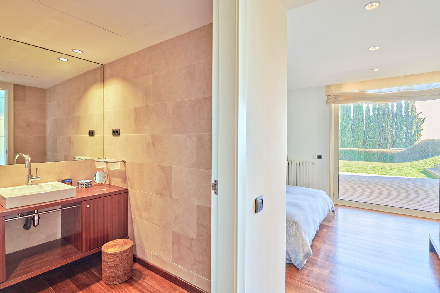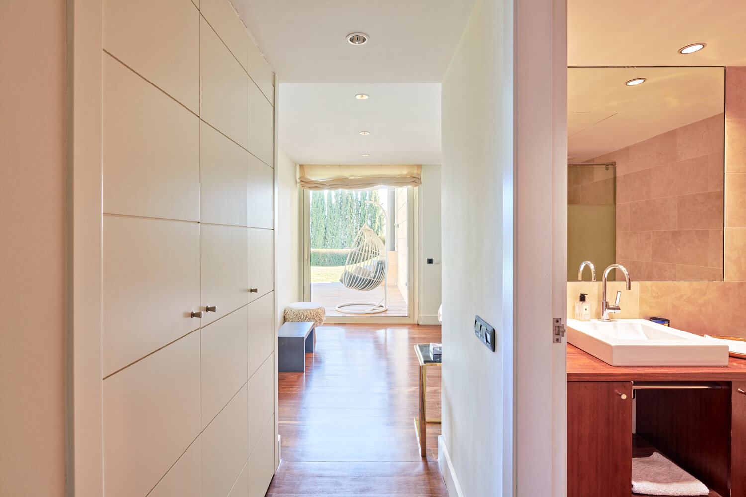 La planta principal dispone de salón, comedor y cocina semiabierta, todo disfrutando de excelentes vistas a toda Barcelona y salida al porche y al jardín. También encontramos la habitación principal en suite con vestidor y zona de despacho. Desde la cocina se accede a una habitación de plancha y, desde ella, a la planta de arriba con zona de servicio de 49 m2, que tiene 2 habitaciones y cuarto de baño.