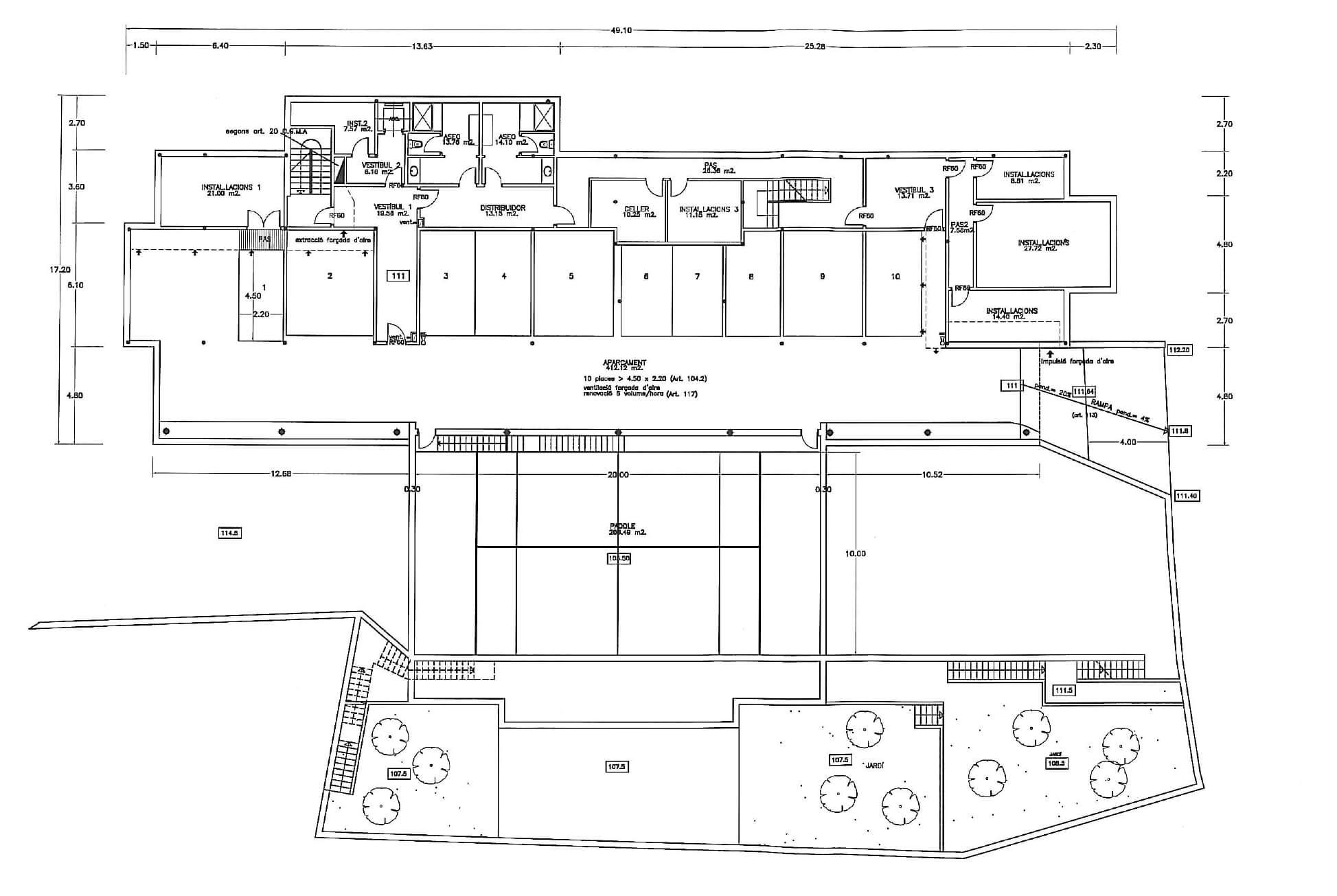 La planta sótano cuenta con un aparcamiento con capacidad para más de 10 coches, 2 trasteros (uno de ellos muy grande), zona de aguas y habitación o zona para el chófer. La zona de la piscina tiene vestidores, pista de pádel y una pequeña cocina. También hay un cercado muy grande para perros.