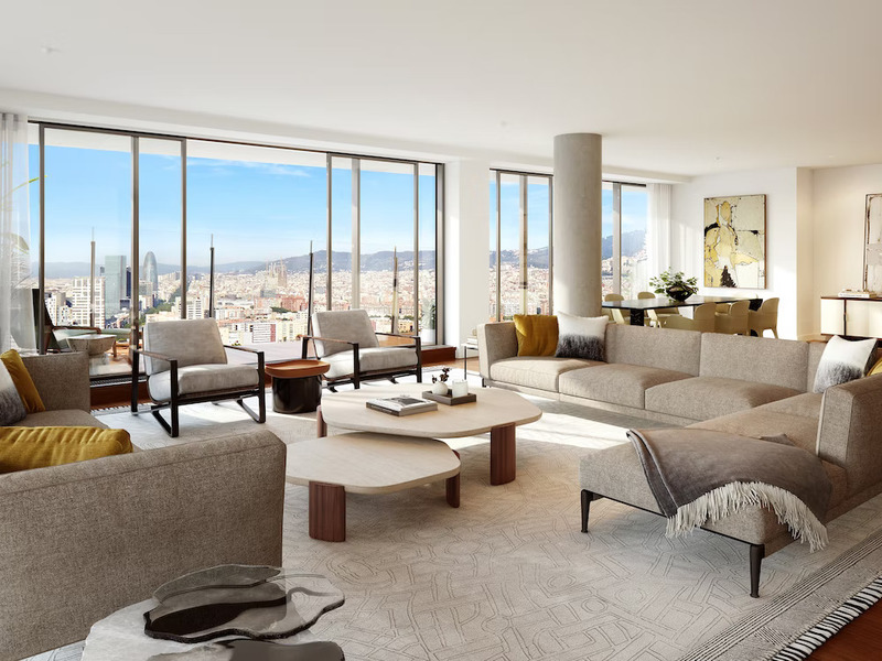 Este fantástico piso de lujo se encuentra en el edificio residencial de lujo más alto de Barcelona, único y el último de sus características que se pudo construir antes del cambio de legislación. Una obra de arte arquitectónica de 30 plantas situada en Diagonal Mar, la zona más moderna de Barcelona. Este piso se sitúa en la planta 18. Tiene 194 m2 construidos interiores y una terraza de 56 m2 que rodea todo el inmueble y ofrece incomparables vistas al mar y a Barcelona. Es el escenario perfecto para socializar, entretenerse y recibir a los invitados disfrutando del agradable clima de Barcelona durante todo el año. El amplio salón-comedor con cocina abierta es muy luminoso, creando una sensación de bienestar única. La zona de noche está formada por la master suite con amplio vestidor y cuarto de baño con ducha y bañera; una segunda habitación en suite, una habitación doble y un cuarto de baño independiente. Todas las estancias tienen salida a la terraza. El precio incluye 2 plazas de parking en el edificio. El edificio crea una experiencia sensorial perfecta, ofreciendo un estilo de vida exclusivo. Desde el centro de wellness y el spa, el restaurante Grand Café Rouge de la planta baja, el parking y los jardines o la pista de pádel, hasta las impresionantes vistas de la terraza de la azotea y la piscina infinita, cada detalle está pensado para ofrecer espacios de vida que inspiren. Junto con el atento equipo de conserjería y el servicio de seguridad 24 horas al día, es más que un espacio para vivir; es un estilo de vida.