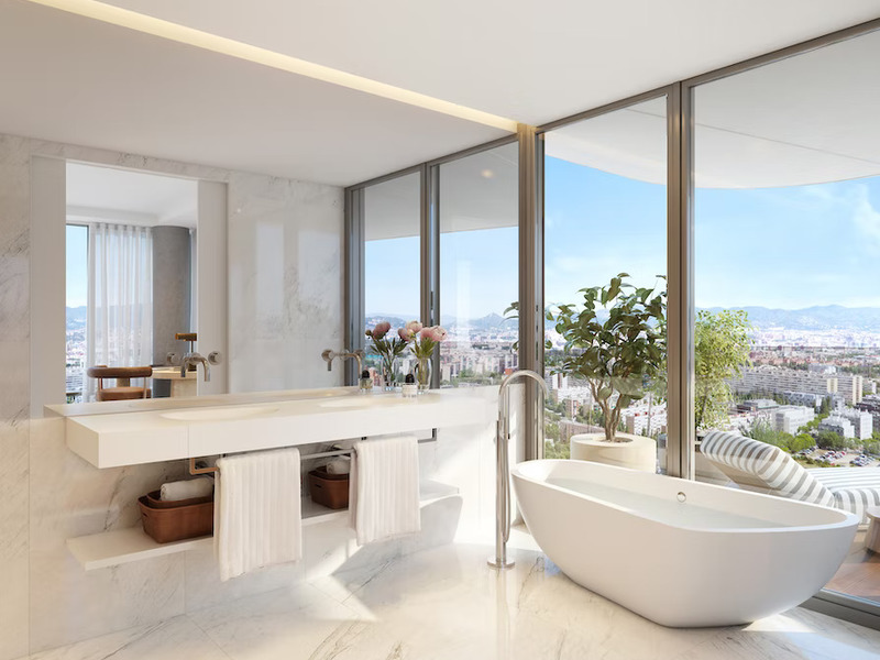 Este sensacional piso se sitúa en el edificio residencial de lujo más alto de Barcelona, único en la ciudad y el último de sus características que se pudo construir antes del cambio de legislación. Se trata de una obra de arte arquitectónica de 30 plantas situada en Diagonal Mar, la zona más moderna de Barcelona. Este piso se sitúa en la cuarta planta. Tiene 99,7 m2 construidos interiores y una terraza de 22,6 m2 con vistas al mar, a la que se puede acceder desde el salón y desde la habitación. Es el rincón perfecto para reunirse, entretenerse, recibir a los invitados o descansar disfrutando del agradable clima de Barcelona durante todo el año. La zona de día es un amplio salón-comedor con cocina abierta equipada con electrodomésticos. La zona de noche dispone de la master suite con cuarto de baño privado y bañera; y un cuarto de baño independiente. El precio incluye una plaza de parking. El edificio crea una experiencia sensorial perfecta, garantizando un estilo de vida exclusivo. Desde el centro de wellness y el spa, el restaurante Grand Café Rouge de la planta baja, el parking y los jardines o la pista de pádel, hasta las impresionantes vistas de la terraza de la azotea y la piscina infinita, cada detalle está pensado para ofrecer espacios que inspiren. Junto con el atento equipo de conserjería y el servicio de seguridad 24 horas al día, es más que un espacio para vivir; es un estilo de vida.