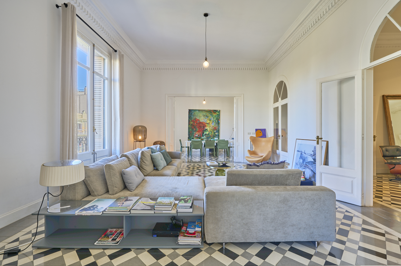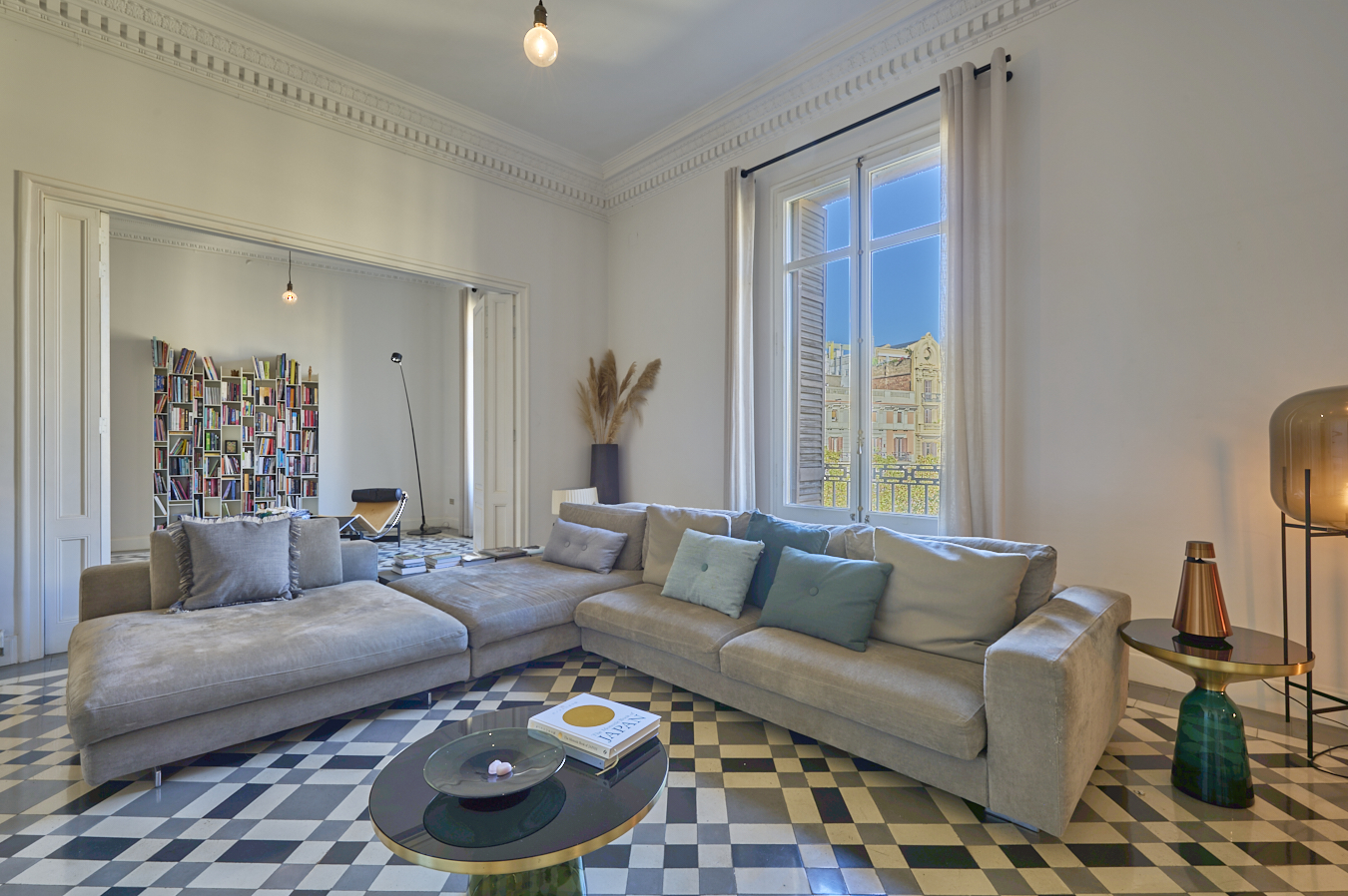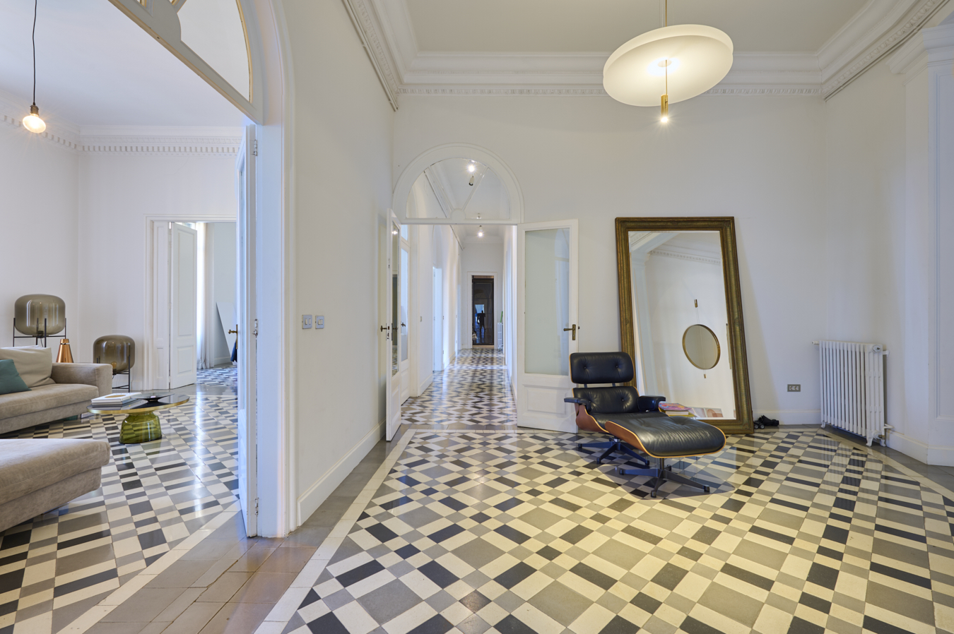 El piso fue reformado en 2013 y su belleza radica en la amplitud de sus espacios y los elementos originales perfectamente conservados: precioso y exclusivo pavimento hidráulico en sus suelos, techos de gran altura con molduras y volta catalana visible en algunos espacios.