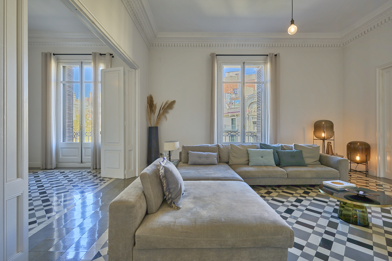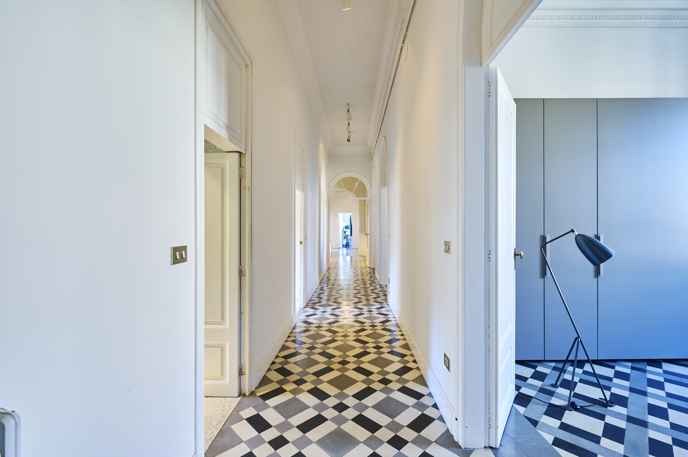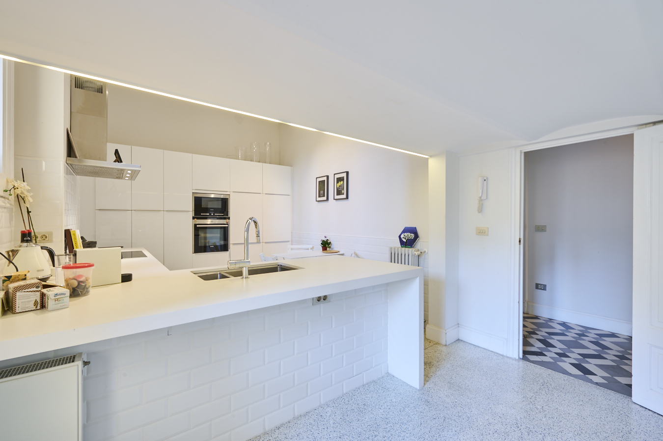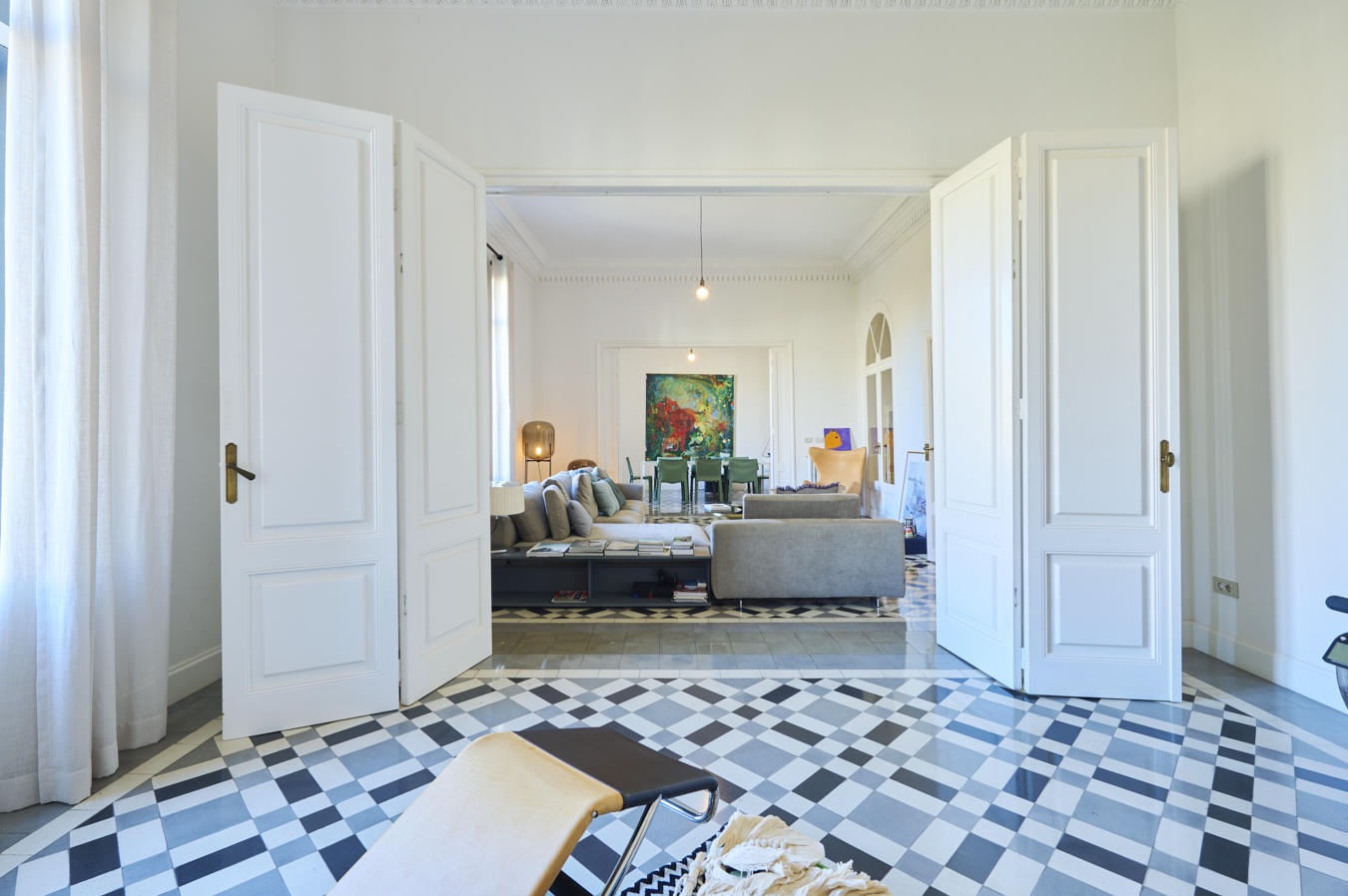 El piso fue reformado en 2013 y su belleza radica en la amplitud de sus espacios y los elementos originales perfectamente conservados: precioso y exclusivo pavimento hidráulico en sus suelos, techos de gran altura con molduras y volta catalana visible en algunos espacios.