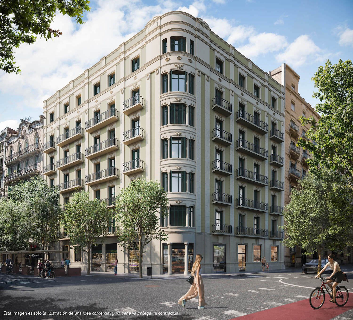 Este magnífico piso tiene una ubicación envidiable de Barcelona y forma parte de un proyecto integral de rehabilitación en una finca regia de 1910 con pisos de alto standing. El edificio es esquinero con la calle Girona, que ya se está convirtiendo en calle peatonal y las obras están casi acabadas, y la Avenida Diagonal, que se está transformando en un boulevard con una gran zona peatonal, zonas verdes y carril bici, reduciendo en gran medida el tráfico de coches. Podrás disfrutar de lo mejor de Barcelona en un marco incomparable: en pleno Eixample, muy cerca del Paseo de Gracia, del centro de la ciudad y de una amplia variedad de comercios y servicios. Esta propiedad, situada en la 2ª planta, tiene 87,95 m2 construidos. Al ser un edificio esquinero, tiene una gran iluminación natural atípica en el Eixample y unas vistas únicas con mucha profundidad. Un vestíbulo da paso al pasillo distribuidor, que nos conduce al amplio salón-comedor con cocina abierta de 20 m2. Junto a él hay un espacio de galería, ideal para crear un ambiente más distendido, que es muy tranquilo. La zona de día tiene vistas a uno de los mejores patios de manzana del Eixample, que es todo un oasis en la gran ciudad. Además, su orientación sur garantiza sol todo el día. La zona de noche está formada por 2 habitaciones: la fantástica master suite, que dispone de cuarto de baño privado y acceso al porche terraza de 6 m2 con orientación sur, y una habitación mediana. Además, hay un cuarto de baño independiente. La vivienda, cuyo final de las obras está previsto para el último trimestre de 2024 y la entrega para el primero de 2025, dispondrá de materiales y acabados de la máxima calidad, así como un interiorismo cuidado al detalle que unirá los elementos clásicos de las fincas regias con lo más moderno. Los amplios espacios y la luminosidad serán importantes, logrando el equilibrio entre elementos tradicionales como los techos con volta catalana restaurada y el confort y las comodidades de una obra nueva: calefacción por suelo radiante y aire acondicionado frío-calor impulsados por aerotermia (la última tecnología en sistemas de climatización que produce un ahorro energético de entre el 60% y el 70% en comparación con los sistemas convencionales), electrodomésticos Siemens de alta gama, suelos de parquet de madera natural, puerta de entrada con cerradura de seguridad, armarios empotrados, alicatado porcelánico en las paredes de los baños, grifería de diseño italiana, iluminación Led, conexión de fibra óptica, tomas de señal de Internet y TV, etc. El edificio, que se rehabilitará integralmente, dispondrá de 2 ascensores (el original restaurado respetando su cabina de madera con un nuevo mecanismo y otro totalmente nuevo), conserjería, una zona para cargar bicicletas eléctricas y un gimnasio privado de estilo modernista-vintage con volta catalana, suelos hidráulicos y un baño completo. La extensa fachada principal del edificio, así como los numerosos patios interiores y la fachada posterior, dotan la edificación de una iluminación y ventilación excelentes. La inusual distancia a las edificaciones paralelas a la fachada realza todavía más la sensación y percepción de amplitud. Tratándose de una finca modernista con importante valor histórico, el equipo de interiorismo ha priorizado la recuperación de algunos elementos originales. Por ejemplo, se ha llevado a cabo una restauración y rehabilitación completa de los estucados modernistas del núcleo de escalera; y en los vestíbulos de independencia se colocará mosaico hidráulico recuperado para mantener el valor histórico de la finca. Además, se han sustituido las carpinterías exteriores por ventanas y balconeras de madera con rotura de puente térmico y vidrio aislante laminado. Esta promoción dispone de pisos de 1, 2 y 3 habitaciones con precios a partir de 511.560 €, 603.480 € y 938.840 €, respectivamente. Contacta con Bcn Advisors para más información. * Los renders y metros cuadrados en este anuncio pueden estar sujetos a cambios. Estas imágenes son meramente informativas y pueden cambiar dependiendo de las necesidades de los clientes o cambios que puedan hacerse durante el proceso de ejecución del proyecto de rehabilitación y/o obras del proyecto. * El plano y el contenido del anuncio no es un documento contractual, forma parte del proyecto ejecutivo y puede estar sujeto a modificaciones por exigencias técnicas, de la administración u organismos públicos. Las superficies tendrán carácter provisional. El mobiliario (incluido la cocina), jardinería y elementos accesorios son solo orientativos. Barcelona es una ciudad con un espíritu cultural vibrante, y nuestros pisos de lujo en el Eixample te sumergen en una experiencia única. Descubre la vida cultural y social de la ciudad.