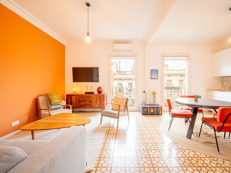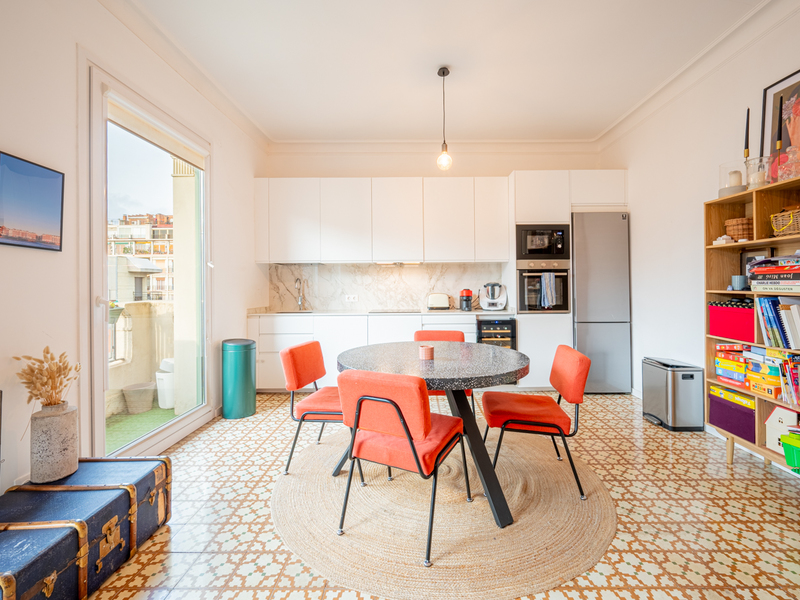 Este maravilloso piso con mucha luz natural se encuentra en una localización ideal del Eixample, a pocos minutos tanto de Plaza Universitat como de la Plaza Espanya. Los alrededores disponen de numerosos servicios, tiendas de barrio, centros comerciales, bares, restaurantes, opciones de ocio y excelente comunicación mediante la línea 1 del metro y autobuses. La vivienda está en la cuarta planta real de un edificio con ascensor y conserje. Tiene 92 m2 construidos interiores y un balcón de 3 m2 que da a la calle. Está lista para entrar a vivir y destaca por sus preciosos suelos hidráulicos y los techos altos. El salón-comedor con cocina abierta es un espacio amplio y agradable en el que la luz natural llena todo el ambiente a través de los grandes ventanales. Tiene acceso a un maravilloso balcón con espacio para mesa y sillas de desayuno, en el que podrás disfrutar al aire libre con mucha tranquilidad, debido a su altura. La zona de noche tiene 3 habitaciones: la principal, una mediana interior y una individual que actualmente se usa como vestidor. Además, hay un gran cuarto de baño completo y un aseo de cortesía. El piso está equipado con aire acondicionado frío/calor por splits y radiadores eléctricos. No dudes en contactar con Bcn Advisors para visitar este piso.