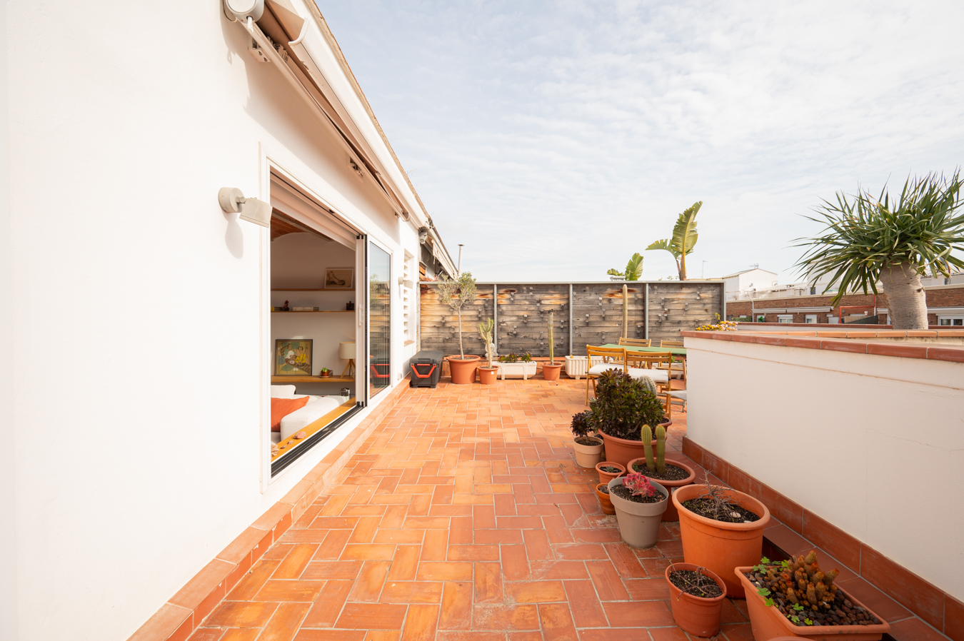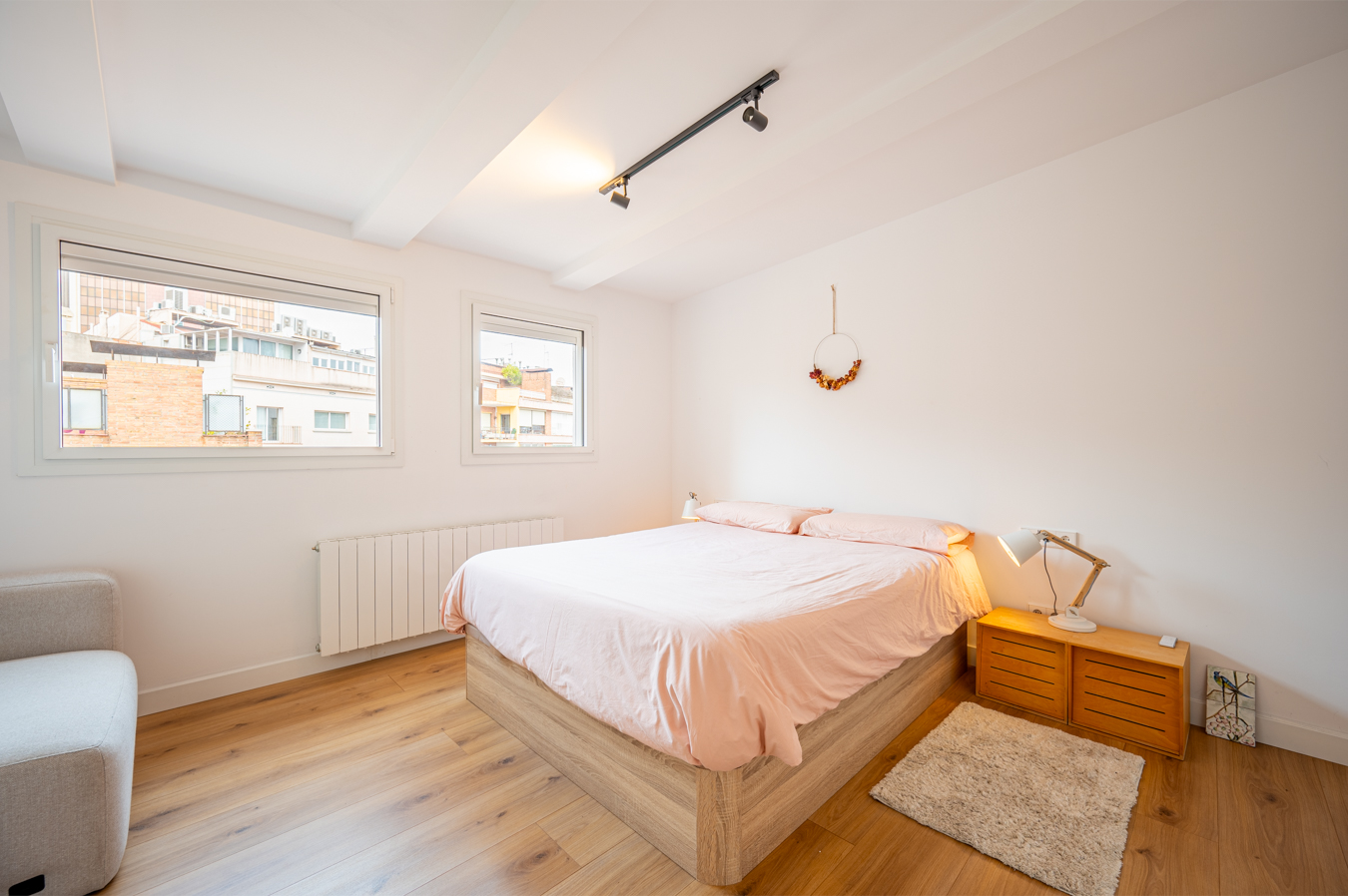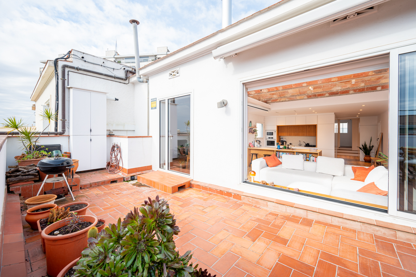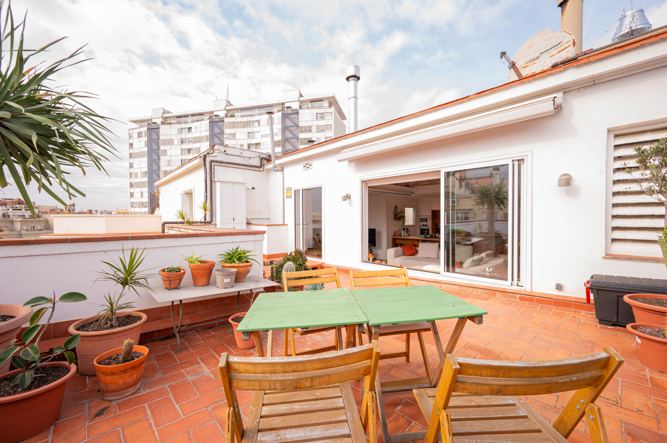 Este ático te permitirá tocar el cielo de Barcelona y disfrutar del sol y de fantásticas vistas desde su terraza. Con una ubicación privilegiada muy cerca de la Plaza Francesc Macià, esta vivienda te ofrece una experiencia de vida inigualable en la gran ciudad, con confort, intimidad, luminosidad y el encanto de la arquitectura tradicional representada en techos con volta catalana, vigas a la vista y paredes de ladrillo.