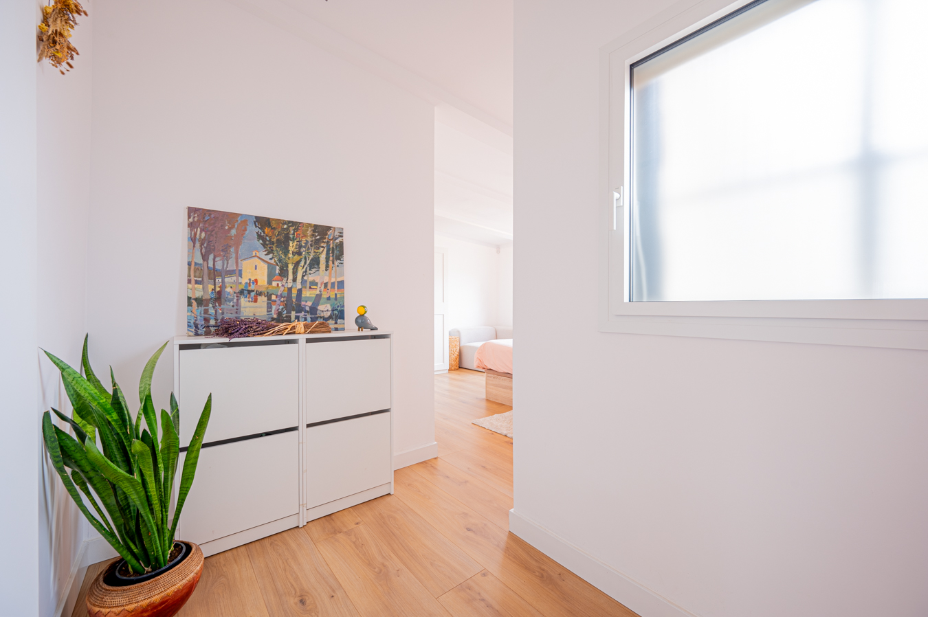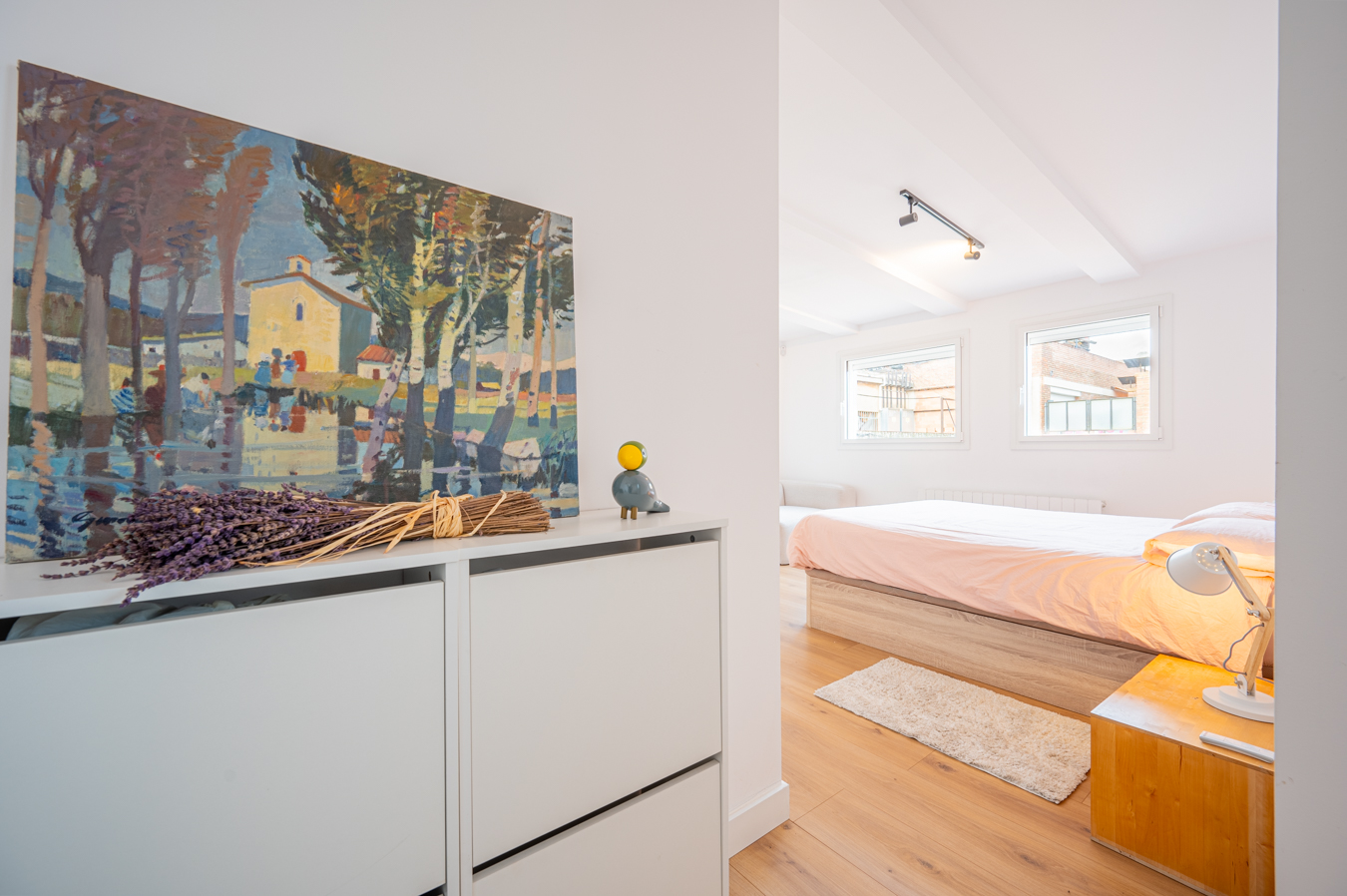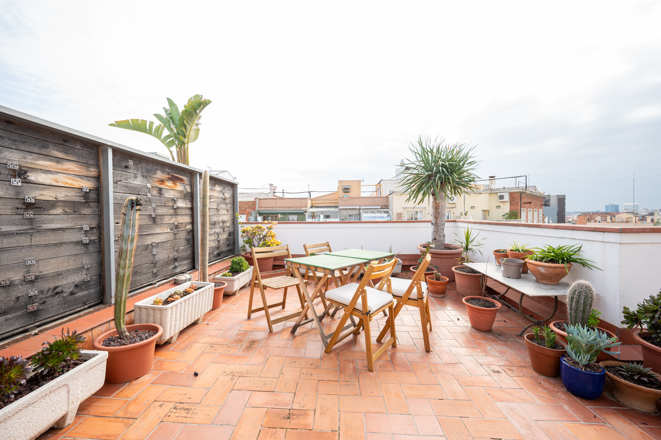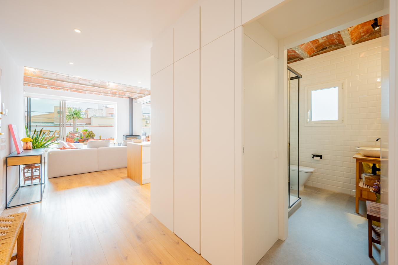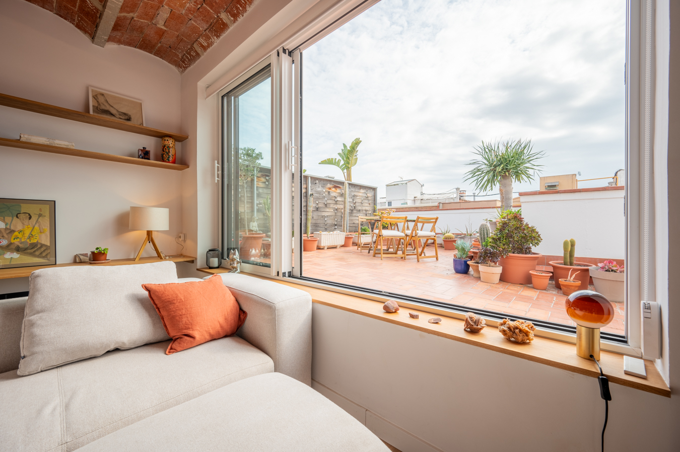 Este ático te permitirá tocar el cielo de Barcelona y disfrutar del sol y de fantásticas vistas desde su terraza. Con una ubicación privilegiada muy cerca de la Plaza Francesc Macià, esta vivienda te ofrece una experiencia de vida inigualable en la gran ciudad, con confort, intimidad, luminosidad y el encanto de la arquitectura tradicional representada en techos con volta catalana, vigas a la vista y paredes de ladrillo.