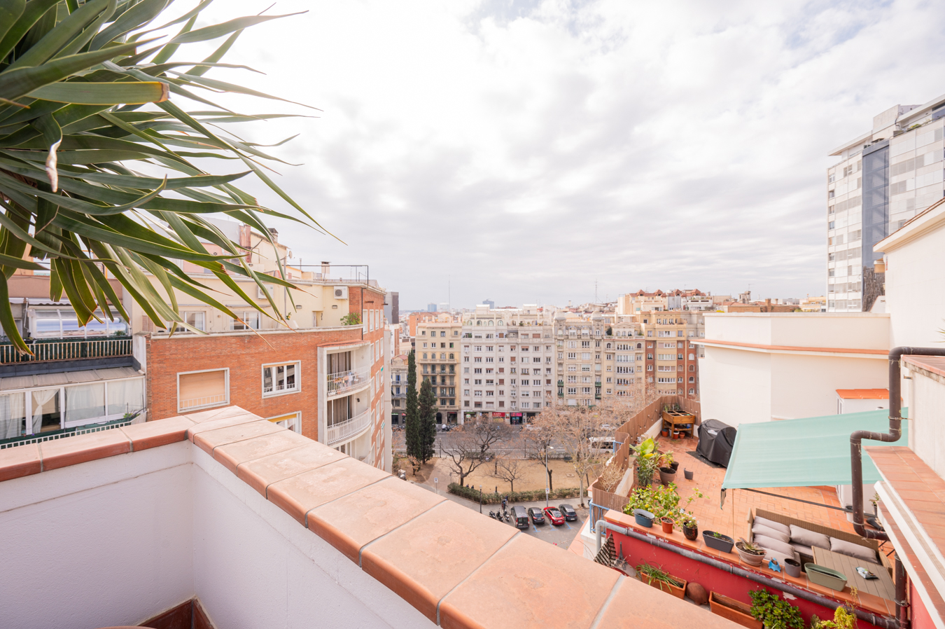 Este ático disfruta de una ubicación excelente con todas las ventajas del Eixample y la zona alta a pocos pasos. Los alrededores tienen todo tipo de servicios, tiendas, el centro comercial El Corte Inglés, restaurantes, zonas verdes como el Turó Park y opciones de transporte público.