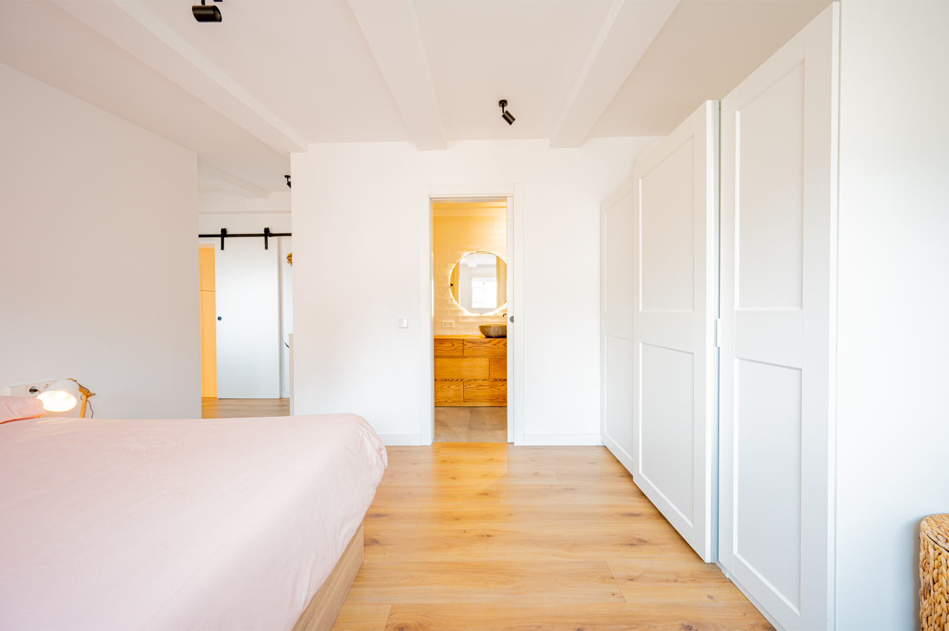 La zona de noche tiene 2 habitaciones increíblemente luminosas. El dormitorio principal tiene cuarto de baño en suite, tiene orientación montaña y da al patio de manzana. El otro dormitorio es mediano y da al patio interior del edificio. A su lado, hay un cuarto de baño independiente.
