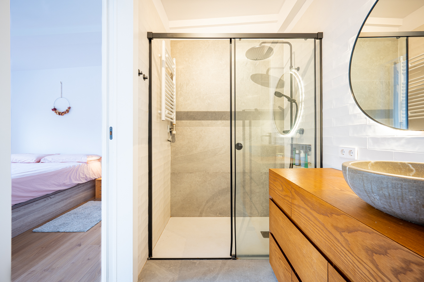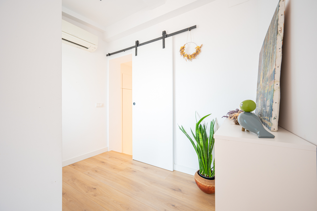 Se trata de un sobreático en la novena planta del edificio, por lo que no hay ninguna vivienda encima de él. Tiene 113 m2 construidos interiores y terraza de 35 m2 con una orientación excepcional que garantiza sol durante todo el día. Fue reformado en 2021 con un concepto moderno y funcional, así como acabados de diseño.