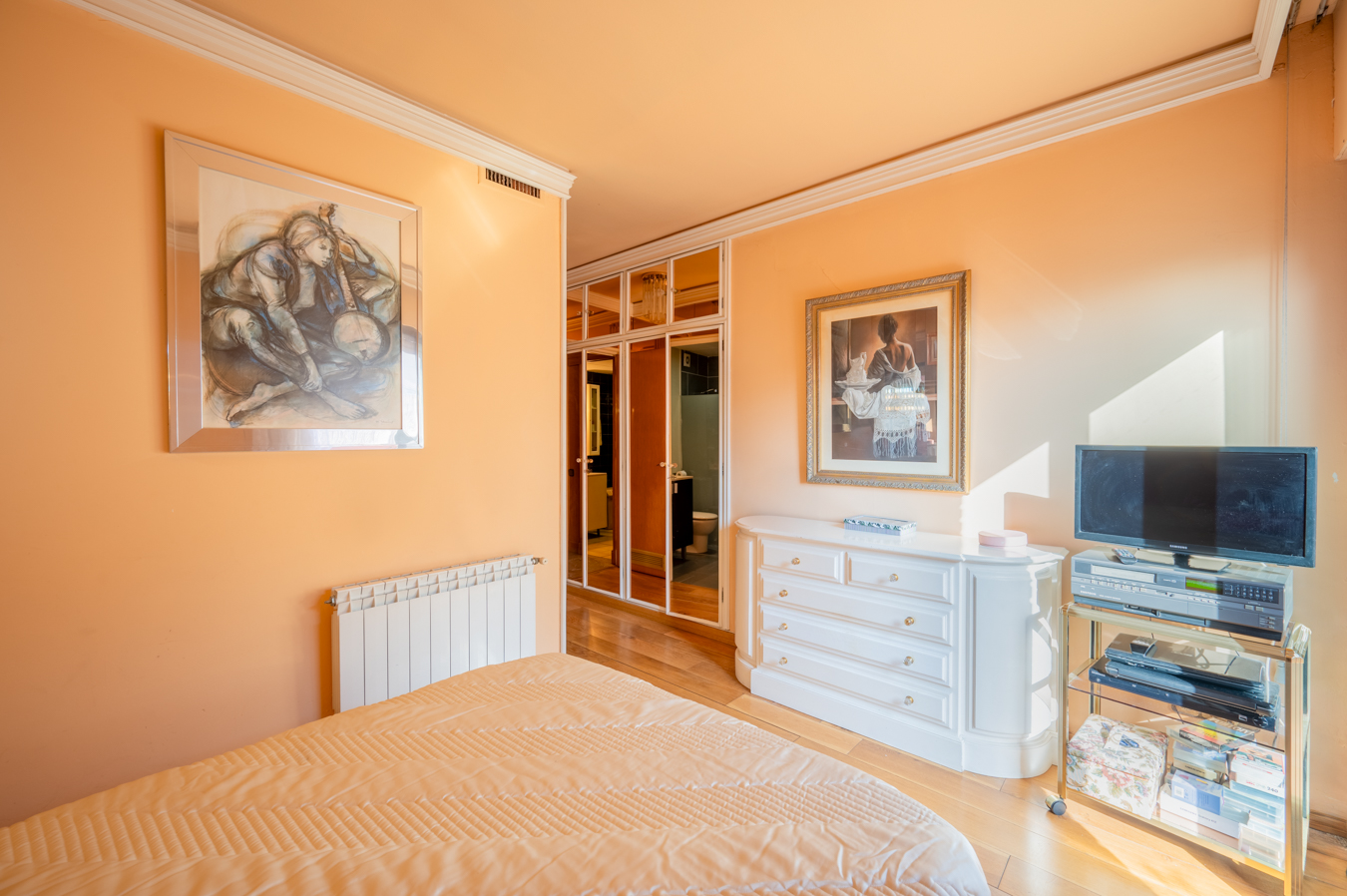 La zona de noche tiene un total de 4 habitaciones dobles, todas de generoso tamaño y con armarios empotrados. El dormitorio principal en suite con vestidor y cuarto de baño propio es exterior, ya que da a la terraza. Otro de los dormitorios también da a la terraza y los otros dos son interiores, pero reciben mucha luz debido a la altura (sexta planta real). Por último, hay un cuarto de baño independiente.