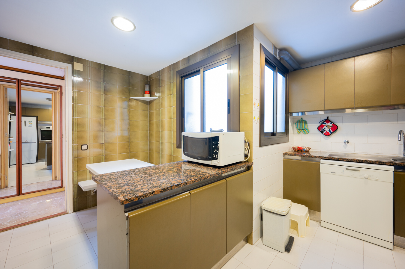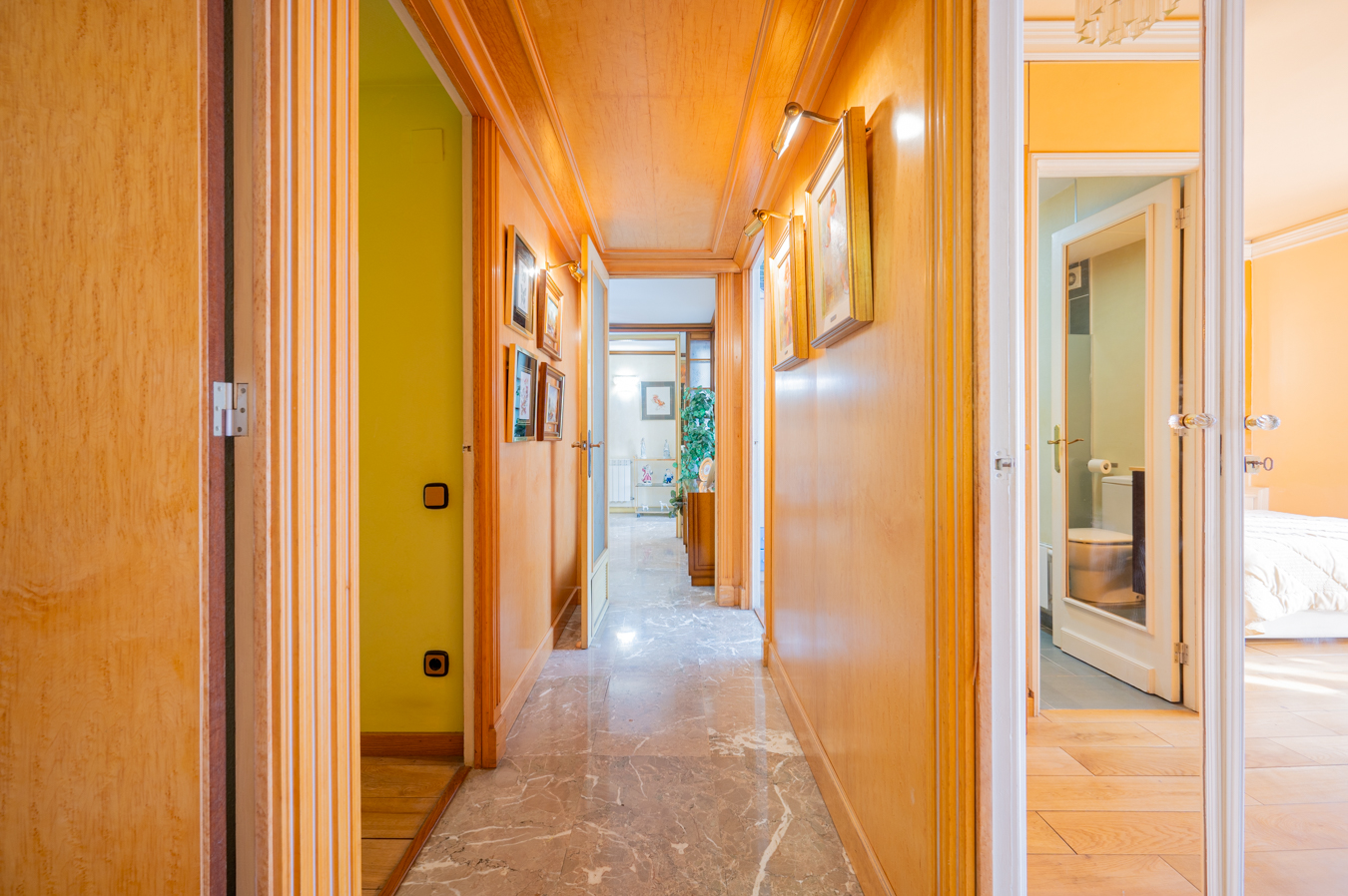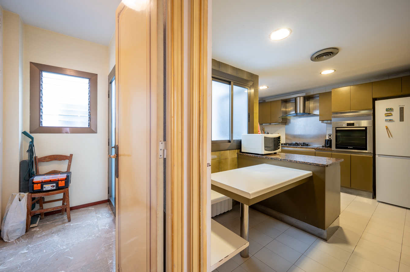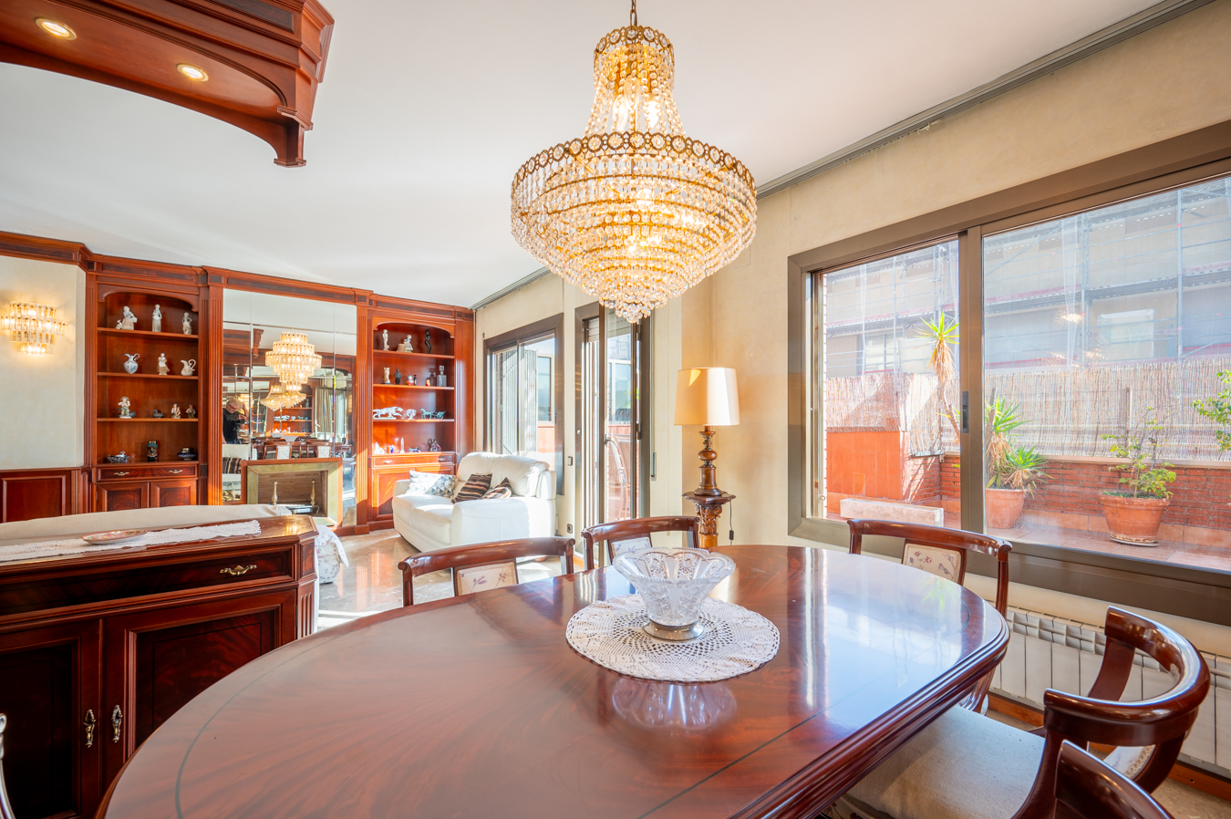 Esta vivienda es una oportunidad fantástica en una excelente zona del Eixample, por su superficie interior de 118 m2 con 4 habitaciones, su enorme terraza de 150 m2, el parking y trastero incluidos en el precio, y su potencial de revalorización. Es perfecta para quienes buscan una inversión sólida y la posibilidad de personalizar cada detalle. La propiedad está en la 1ª planta de un edificio de los años 80. Se sitúa en la parte alta del Eixample, muy cerca de la plaza Francesc Macià, la Avenida Diagonal, el barrio de Galvany y el Turó Park. La ubicación es tremendamente estratégica, ya que podrás disfrutar de lo mejor del Eixample y de la zona alta de Barcelona a pocos pasos: tiendas de barrio, boutiques de primeras marcas, bares y restaurantes, zonas verdes y opciones de transporte público. La distribución actual del piso, con 118 m2 construidos interiores y 170 m2 exteriores, permite una reforma moderna y funcional, ideal para crear espacios abiertos y contemporáneos. Goza de sol directo por las mañanas, aportando luminosidad y calidez a las estancias principales. Además es muy tranquilo, ya que da al patio de manzana. Un recibidor nos da la bienvenida y a través del pasillo distribuidor avanzamos hacia el salón, muy acogedor para tu día a día. Desde él accedemos a la espectacular terraza de 150 m2, un espacio que te permitirá crear todos los ambientes que desees para disfrutar al aire libre de comidas, reuniones, juegos, tu huerto urbano y el relax. Volviendo al interior, la cocina office es de tamaño generoso, con espacio para mesa y sillas, está equipada con electrodomésticos y tiene salida a un patio que se utiliza como lavadero. En la zona de noche, otro patio interior garantiza luz natural y ventilación. Hay 4 dormitorios, uno de ellos en suite con salida a la terraza, cuarto de baño privado y armarios empotrados, y otro cuarto de baño independiente. El piso está equipado con suelos de parquet, aire acondicionado por splits y calefacción por radiadores de gas natural. El precio incluye una plaza de parking y un trastero en el mismo edificio. No dudes en conctactar con Bcn Advisors para visitar este inmueble.