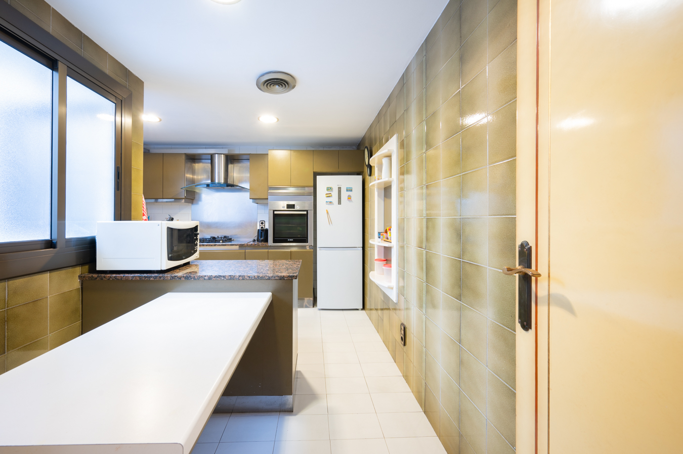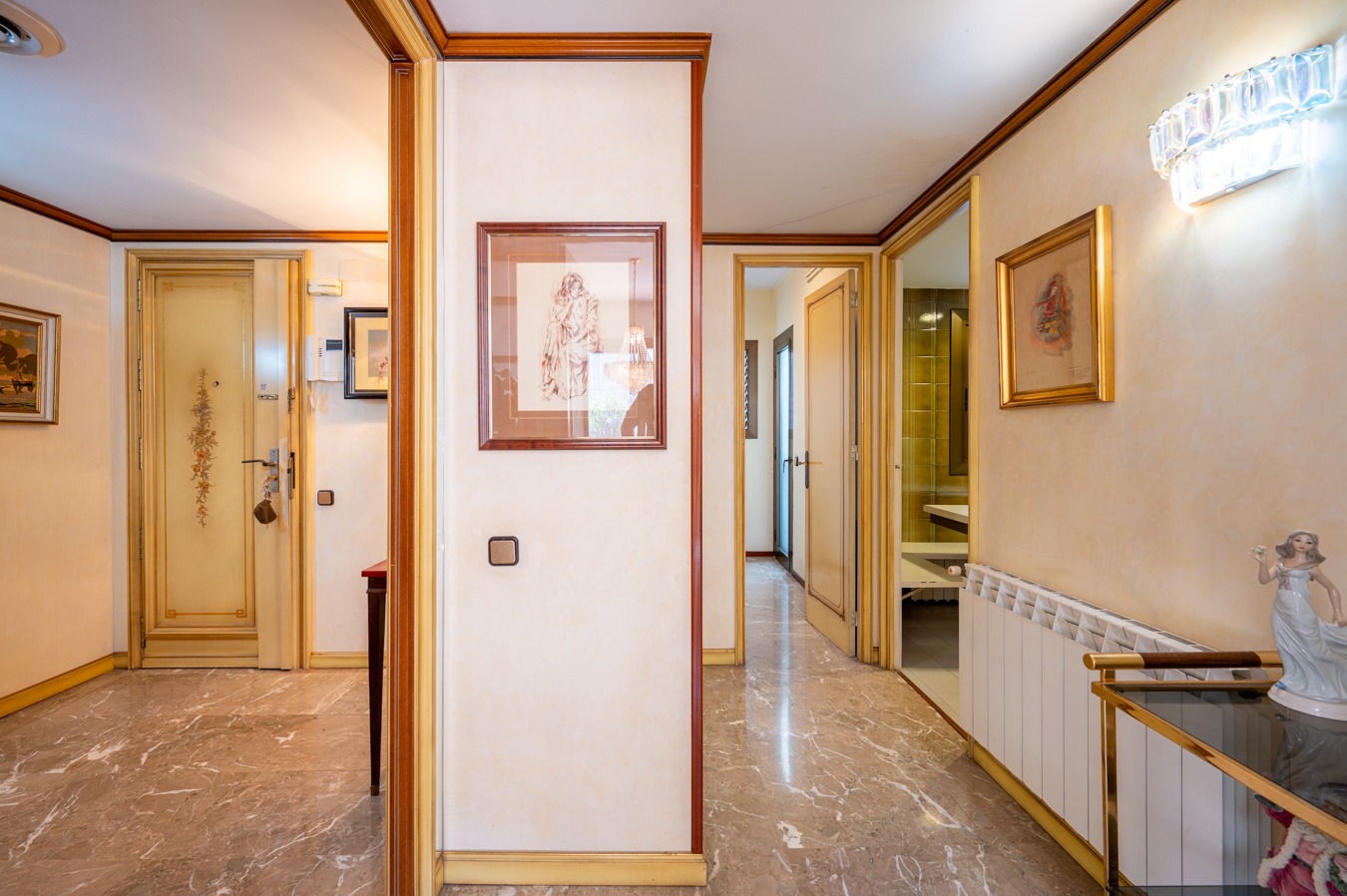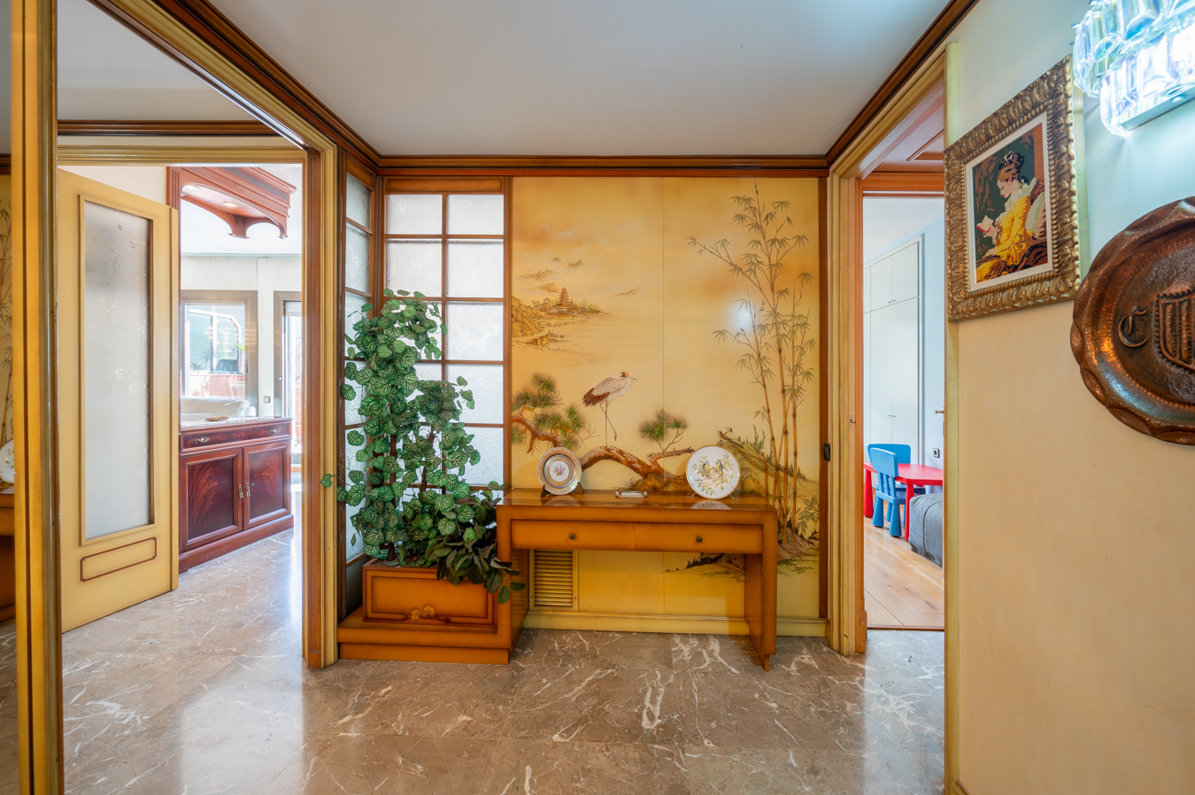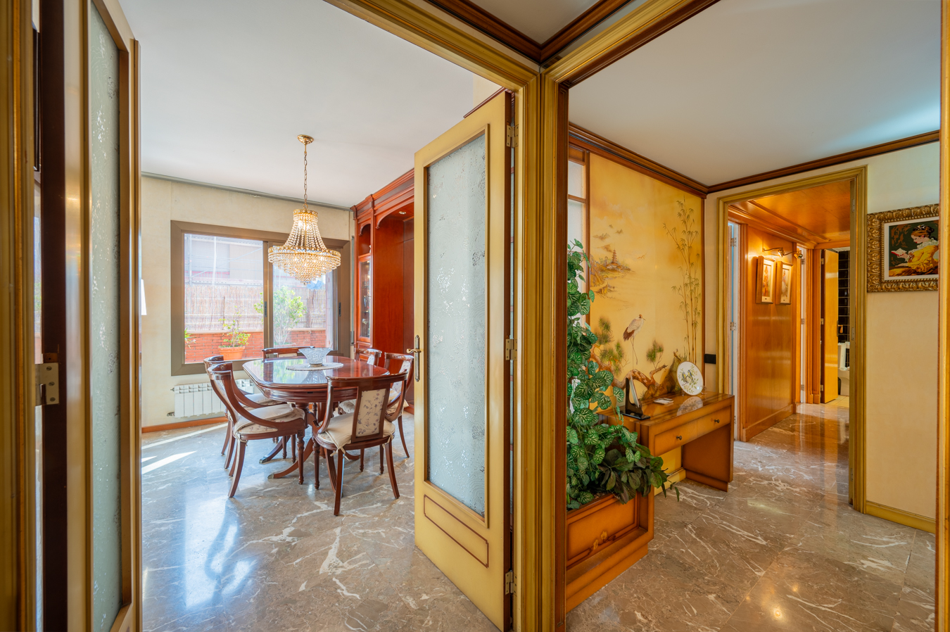 Esta vivienda es una oportunidad fantástica en una excelente zona del Eixample, por su superficie interior de 118 m2 con 4 habitaciones, su enorme terraza de 150 m2, el parking y trastero incluidos en el precio, y su potencial de revalorización. Es perfecta para quienes buscan una inversión sólida y la posibilidad de personalizar cada detalle. La propiedad está en la 1ª planta de un edificio de los años 80. Se sitúa en la parte alta del Eixample, muy cerca de la plaza Francesc Macià, la Avenida Diagonal, el barrio de Galvany y el Turó Park. La ubicación es tremendamente estratégica, ya que podrás disfrutar de lo mejor del Eixample y de la zona alta de Barcelona a pocos pasos: tiendas de barrio, boutiques de primeras marcas, bares y restaurantes, zonas verdes y opciones de transporte público. La distribución actual del piso, con 118 m2 construidos interiores y 170 m2 exteriores, permite una reforma moderna y funcional, ideal para crear espacios abiertos y contemporáneos. Goza de sol directo por las mañanas, aportando luminosidad y calidez a las estancias principales. Además es muy tranquilo, ya que da al patio de manzana. Un recibidor nos da la bienvenida y a través del pasillo distribuidor avanzamos hacia el salón, muy acogedor para tu día a día. Desde él accedemos a la espectacular terraza de 150 m2, un espacio que te permitirá crear todos los ambientes que desees para disfrutar al aire libre de comidas, reuniones, juegos, tu huerto urbano y el relax. Volviendo al interior, la cocina office es de tamaño generoso, con espacio para mesa y sillas, está equipada con electrodomésticos y tiene salida a un patio que se utiliza como lavadero. En la zona de noche, otro patio interior garantiza luz natural y ventilación. Hay 4 dormitorios, uno de ellos en suite con salida a la terraza, cuarto de baño privado y armarios empotrados, y otro cuarto de baño independiente. El piso está equipado con suelos de parquet, aire acondicionado por splits y calefacción por radiadores de gas natural. El precio incluye una plaza de parking y un trastero en el mismo edificio. No dudes en conctactar con Bcn Advisors para visitar este inmueble.