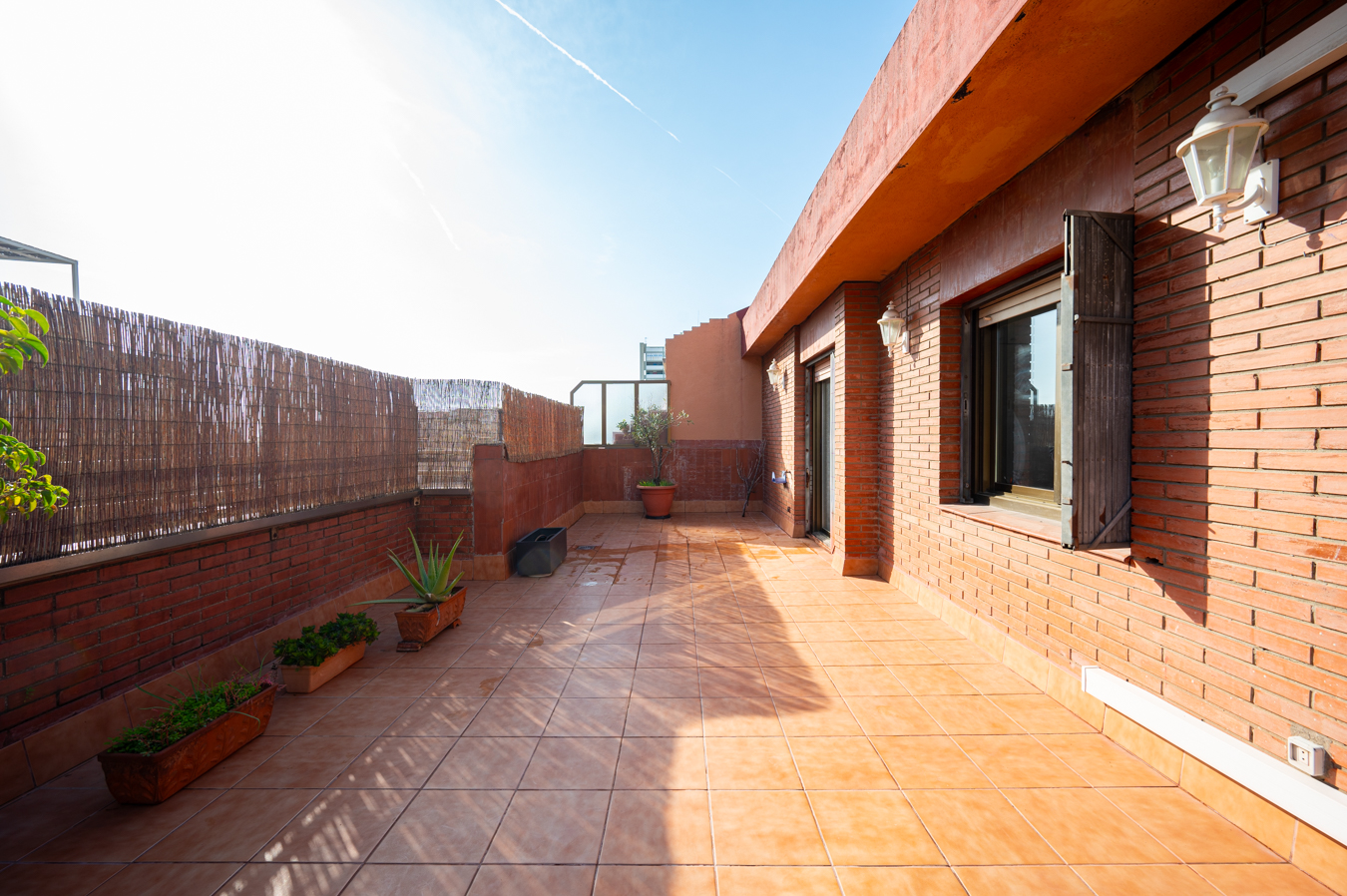 Este ático te permitirá tocar el cielo de Barcelona y disfrutar del sol y de fantásticas vistas desde su terraza. Con una ubicación privilegiada muy cerca de la Plaza Francesc Macià, esta vivienda te ofrece una experiencia de vida inigualable en la gran ciudad, con confort, intimidad, luminosidad y el encanto de la arquitectura tradicional representada en techos con volta catalana, vigas a la vista y paredes de ladrillo. Se trata de un sobreático en la novena planta del edificio, por lo que no hay ninguna vivienda encima de él. Tiene 113 m2 construidos interiores y terraza de 35 m2 con una orientación excepcional que garantiza sol durante todo el día. Fue reformado en 2021 con un concepto moderno y funcional, así como acabados de diseño. La entrada nos lleva directamente a la amplia zona de día, formada por un salón-comedor con cocina abierta e isla central. El ambiente es muy acogedor y lleno de vida con gran luminosidad, además del toque excelente de la volta catalana en los techos y una chimenea que aporta calidez y distinción. Desde el salón accedemos a la terraza, orientada hacia el mar. Es el lugar perfecto para celebrar animadas comidas y reuniones con familia y amigos, o simplemente descansar en el agradable clima de Barcelona. La zona de noche tiene 2 habitaciones increíblemente luminosas. El dormitorio principal tiene cuarto de baño en suite, tiene orientación montaña y da al patio de manzana. El otro dormitorio es mediano y da al patio interior del edificio. A su lado, hay un cuarto de baño independiente. El ático está equipado con aire acondicionado por splits, calefacción por radidores de gas natural, suelos de parquet sintético. El edificio tiene servicio de conserjería de lunes a viernes y 2 ascensores. Su entrada fue reformada recientemente. Este ático disfruta de una ubicación excelente con todas las ventajas del Eixample y la zona alta a pocos pasos. Los alrededores tienen todo tipo de servicios, tiendas, el centro comercial El Corte Inglés, restaurantes, zonas verdes como el Turó Park y opciones de transporte público. No dudes en contactar con Bcn Advisors para visitar este piso.