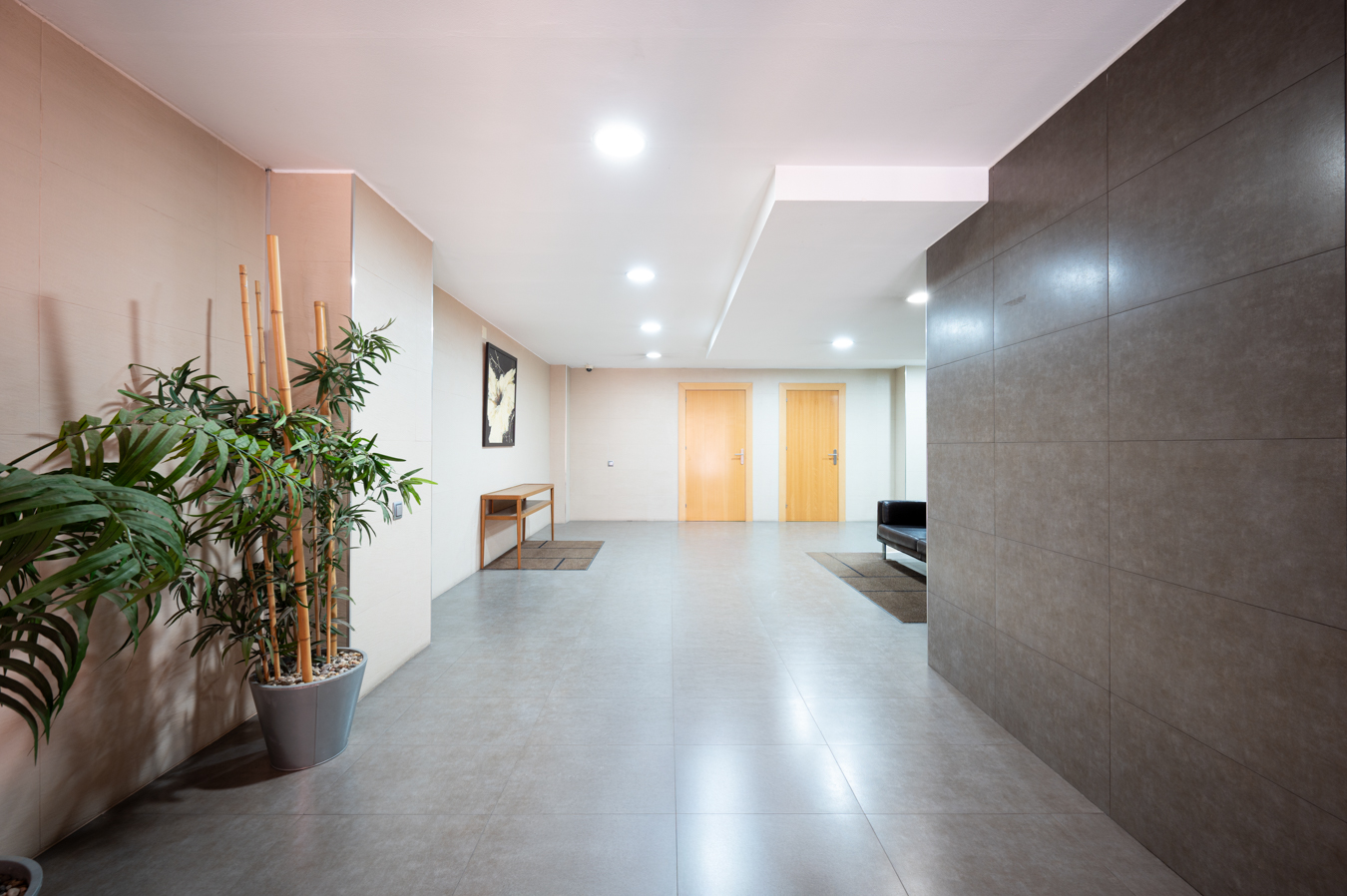 Un gran recibidor divide a ambos lados las zonas de día y de noche. El salón-comedor es muy amplio y tiene grandes ventanales con salida directa a la fantástica terraza, ideal para disfrutar al aire libre de comidas, reuniones o simplemente relajarse. Su doble orientación sur y este hace que tenga sol prácticamente todo el día. Volviendo al interior del ático, encontramos una cocina office de gran tamaño y un cuarto de almacenaje que se conecta con la zona de aguas exterior de 2,85 m2.