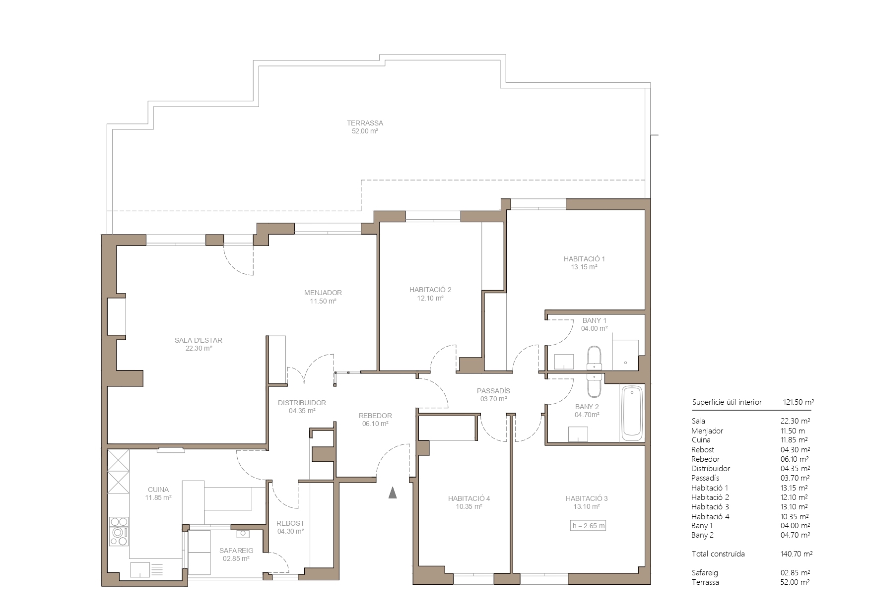 Esta magnífica propiedad disfruta de una ubicación extraordinaria en Barcelona y forma parte de un proyecto integral de rehabilitación en una finca regia de 1910 con exclusivas viviendas de lujo. El edificio es esquinero con la calle Girona, cuyas obras para ser peatonal están prácticamente listas, y la Avenida Diagonal, que se está transformando en una avenida de estilo boulevard con una gran zona peatonal, zonas verdes y carril bici, reduciendo bastante el tráfico de vehículos. Podrás disfrutar de lo mejor de Barcelona en un marco incomparable: en pleno Eixample, muy cerca del Paseo de Gracia, del centro de la ciudad y de todos los comercios y servicios. Esta vivienda en la quinta planta real tiene 128,4 m2 construidos interiores, 17,04 m2 de elementos comunes y 2 balcones que suman 4,7 m2. Al ser un edificio esquinero, tiene una gran iluminación natural atípica en la zona y unas vistas únicas con mucha profundidad. Un vestíbulo da paso al pasillo distribuidor, que nos conduce al amplio salón-comedor de 28 m2, que es muy luminoso y dispone de un balcón orientado hacia la calle. La cocina es independiente y cerca de ella hay una zona de aguas. La zona de noche cuenta con tres habitaciones. La sensacional master suite dispone de una zona de vestidor en la entrada, que distribuye el cuarto de baño privado y el dormitorio. Tiene un balcón que da a la calle. Además, hay 2 habitaciones dobles interiores y un cuarto de baño independiente. El piso, cuyo final de las obras está previsto para el último trimestre de 2024 y la entrega para el primero de 2025, dispondrá de materiales y acabados de la máxima calidad, así como un interiorismo cuidado al detalle que unirá los elementos clásicos de las fincas regias con lo más moderno. Los amplios espacios y la luminosidad serán importantes, logrando el equilibrio entre elementos tradicionales como los techos con volta catalana restaurada y el confort y las comodidades de una obra nueva: calefacción por suelo radiante y aire acondicionado frío-calor impulsados por aerotermia (la última tecnología en sistemas de climatización que produce un ahorro energético de entre el 60% y el 70% en comparación con los sistemas convencionales), electrodomésticos Siemens de alta gama, suelos de parquet de madera natural, puerta de entrada con cerradura de seguridad, armarios empotrados, alicatado porcelánico en las paredes de los baños, grifería de diseño italiana, iluminación Led, conexión de fibra óptica, tomas de señal de Internet y TV, etc. El edificio, que se rehabilitará integralmente, dispondrá de dos ascensores (el original restaurado respetando su cabina de madera con un nuevo mecanismo y otro totalmente nuevo), conserjería, una zona para cargar bicicletas eléctricas y un gimnasio privado de estilo modernista-vintage con volta catalana, suelos hidráulicos y un baño completo. La extensa fachada principal del edificio, así como los numerosos patios interiores y la fachada posterior, dotan la edificación de una iluminación y ventilación excelentes. La inusual distancia a las edificaciones paralelas a la fachada realza todavía más la sensación y percepción de amplitud. Tratándose de una finca modernista con importante valor histórico, el equipo de interiorismo ha priorizado la recuperación de algunos elementos originales. Por ejemplo, se ha llevado a cabo una restauración y rehabilitación completa de los estucados modernistas del núcleo de escalera; y en los vestíbulos de independencia se colocará mosaico hidráulico recuperado para mantener el valor histórico de la finca. Además, se han sustituido las carpinterías exteriores por ventanas y balconeras de madera con rotura de puente térmico y vidrio aislante laminado. * Los renders y metros cuadrados en este anuncio pueden estar sujetos a cambios. Estas imágenes son meramente informativas y pueden cambiar dependiendo de las necesidades de los clientes o cambios que puedan hacerse durante el proceso de ejecución del proyecto de rehabilitación y/o obras del proyecto. * El plano y el contenido del anuncio no es un documento contractual, forma parte del proyecto ejecutivo y puede estar sujeto a modificaciones por exigencias técnicas, de la administración u organismos públicos. Las superficies tendrán carácter provisional. El mobiliario (incluido la cocina), jardinería y elementos accesorios son solo orientativos. ¿Deseas una propiedad que capture la esencia de Barcelona? Nuestros pisos de lujo en venta en el Eixample de Barcelona te ofrecen la oportunidad de ser parte de su encanto.
