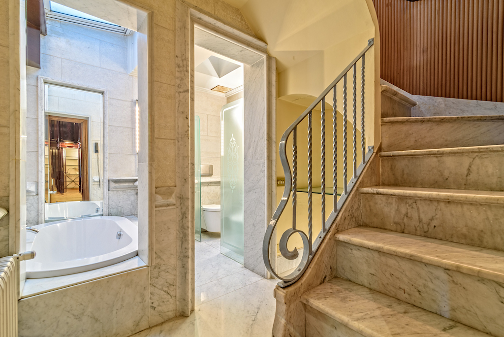 Consta de 4 dormitorios dobles exteriores (3 en suite), vestidores, despacho, biblioteca, zona de servicio con acceso privativo y 5 cuartos de baño completos. Sus estancias cuentan con aire acondicionado por conductos con bomba de calor, calefacción de gas y domótica.