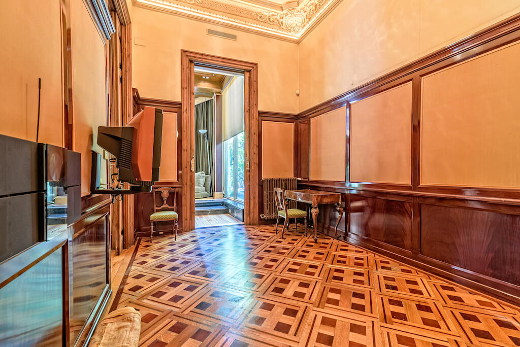 Esta exclusiva vivienda consta de 632 m2 y un jardín privado de 311 m2 que da al patio de manzana. Sus estancias disfrutan de techos altos con elementos decorativos en madera y suelos de mosaico originales perfectamente restaurados.