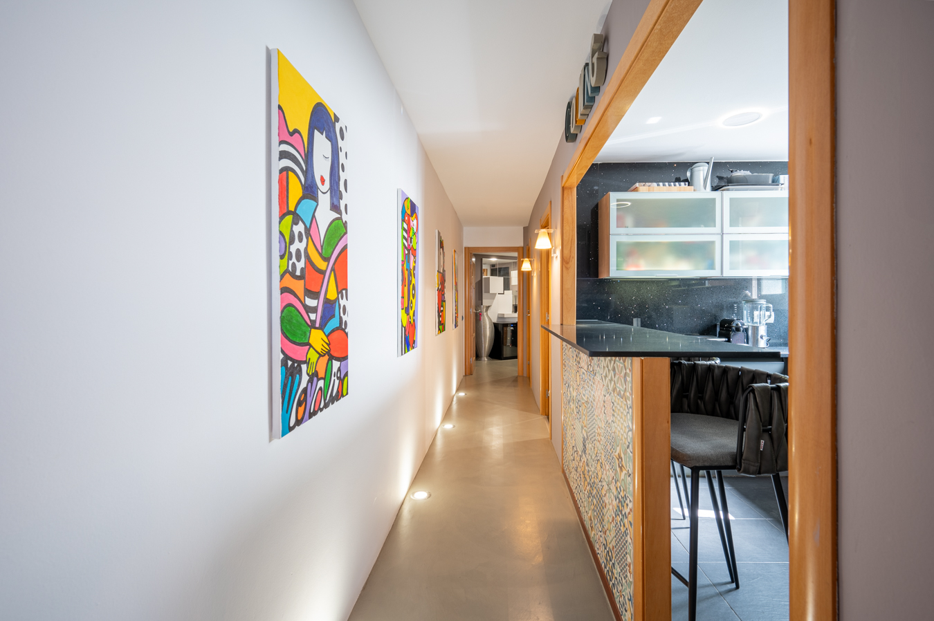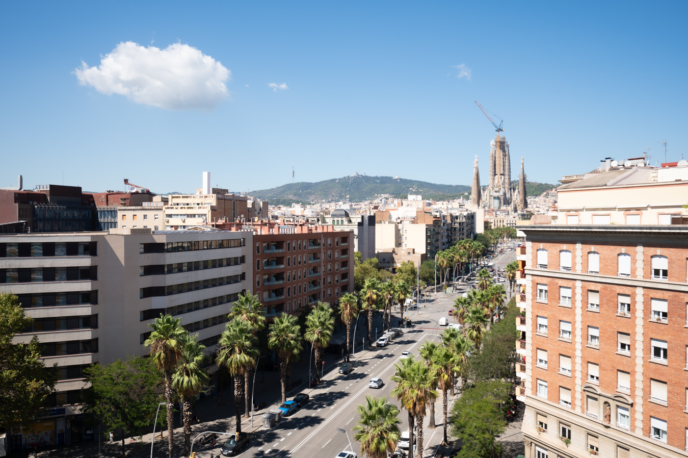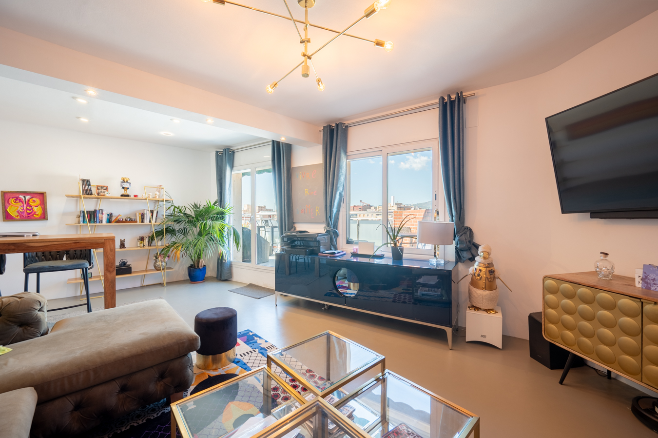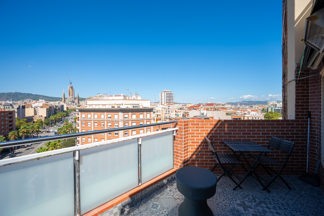 El ático dispone de un amplio recibidor y, a través de un pasillo, llegamos al salón-comedor. Es una estancia amplia, luminosa y tranquila con acceso a una sensacional terraza, un lugar ideal para disfrutar de reuniones al aire libre con vistas a la Sagrada Familia, la ciudad y la montaña. Su orientación sur es ideal para disfrutar de luz natural casi todo el día. La cocina queda abierta al pasillo.