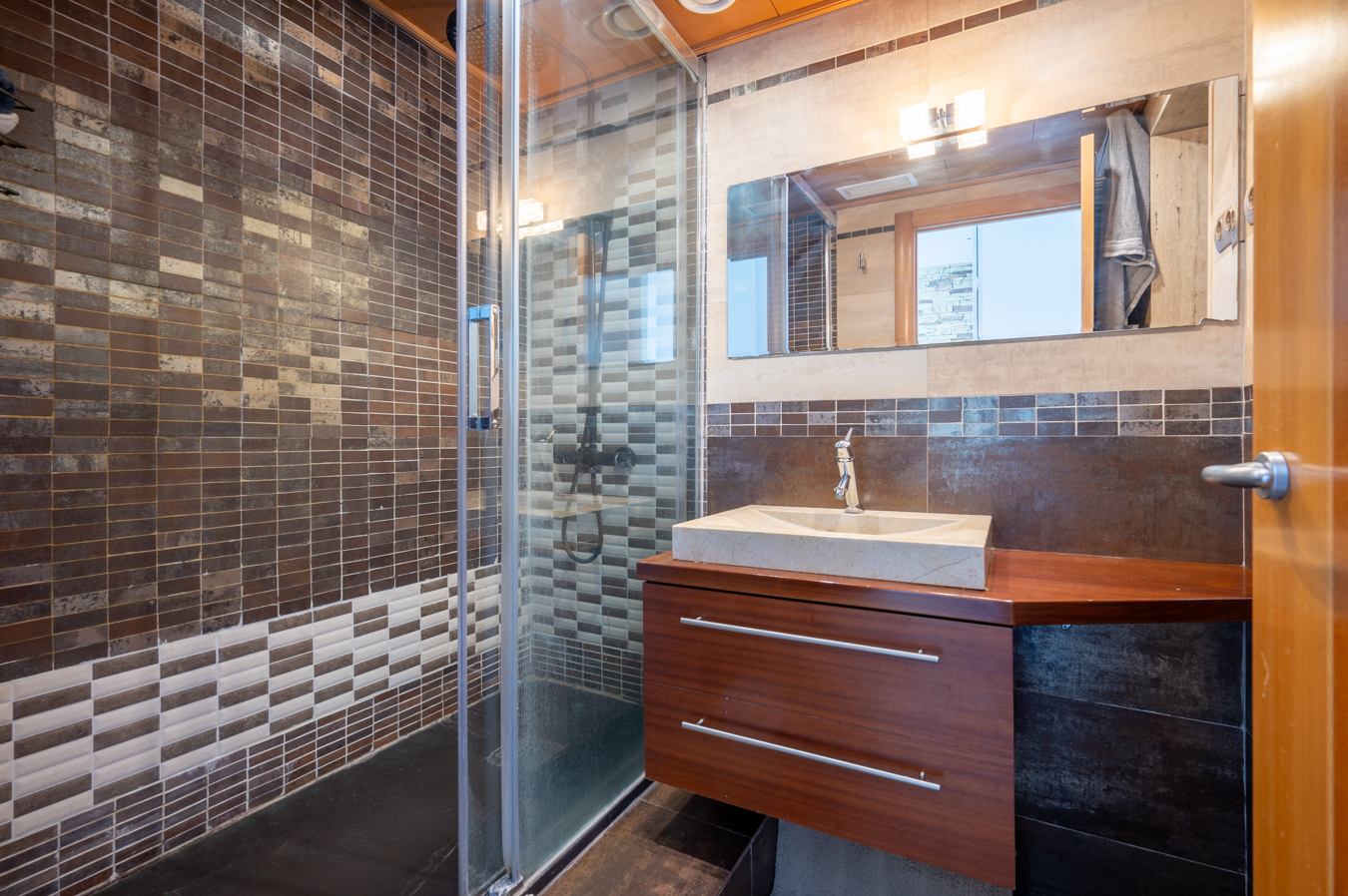 Este fabuloso ático de 94,8 m2 construidos interiores y una maravillosa terraza de 23,7 m2 será tu oasis en plena ciudad. Está en un estado excelente, diseñado para el máximo confort y reformado con materiales y acabados de alta gama para ofrecerte un estilo de vida de lujo con todo lo que necesitas. Un amplio recibidor nos da la bienvenida y divide las zonas de día y de noche. El salón-comedor con cocina integrada es muy luminoso gracias a su excelente orientación suroeste y tiene salida a la amplia terraza. La cocina está equipada con electrodomésticos Bosch, campana extractora Pando y encimera Neolith. Dispone de una península con espacio para 2 comensales, ideal para tomar algo o desayunar. La terraza, que es muy soleada, es el lugar perfecto para disfrutar al aire libre de reuniones con tu familia y amigos, comidas y cenas, o simplemente relajarte y disfrutar del agradable clima de Barcelona. La terraza dispone de iluminación nocturna y en los escalones, un toldo eléctrico, ducha y tarima de PVC tonalidad teka que no necesita mantenimiento. Al otro lado del ático encontramos 2 habitaciones, una doble y otra mediana. La habitación principal es en suite con cuarto de baño privado y un pequeño vestidor. Ambas dan al patio interior del edificio pero, al tratarse de un ático, son muy luminosas, con sol de mañana. Además, hay un cuarto de baño independiente. La tercera habitación es un estudio/despacho, que es un cerramiento de la terraza y podría usarse como habitación para invitados si es necesario. El ático destaca por la gran calidad de sus materiales y acabados. Está equipado con suelos de parquet, aire acondicionado frío/calor por conductos Fujitsu (con 2 máquinas, una para la zona de día y otra para la de noche), calefacción por radiadores de gas natural, iluminación Led realizada mediante proyecto específico y persianas eléctricas, entre otros. Este ático se sitúa en la octava planta de un edificio con ascensor. Está en el distrito de Les Corts, rodeado de agradables zonas verdes donde disfrutar de la vida urbana y con todos los servicios y comercios necesarios para el día a día: colegios, restaurantes, gimnasios, un centro comercial a pocos metros, etc. Además, está cerca de los barrios de Sants y Pedralbes y dispone de una excelente comunicación mediante transporte público con el resto de la ciudad. No dudes en contactar con Bcn Advisors para visitar este ático.