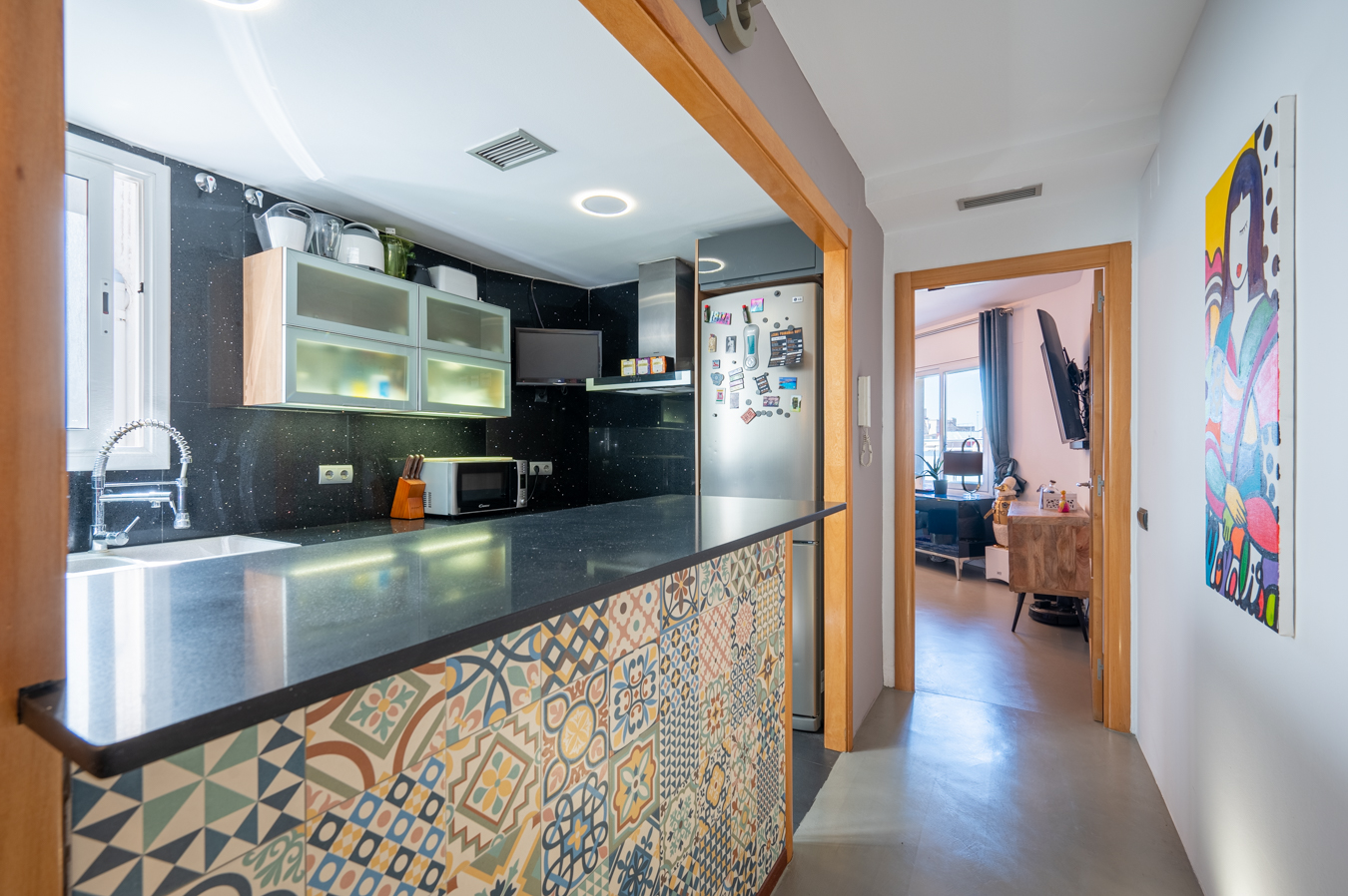 En una de las calles peatonales más serenas y con mayor encanto del Barrio Gótico, se encuentra esta vivienda excepcional recién reformada, donde la luz mediterránea, el diseño actual y la esencia histórica de Barcelona se combinan con absoluta armonía. Está a pocos minutos del Soho House Barcelona y del frente marítimo, con numerosos comercios, servicios y transporte público en los alrededores Ubicado en la cuarta y última planta de una finca rehabilitada sin ascensor, el piso disfruta de doble orientación, lo que garantiza luz natural durante todo el día y una notable sensación de tranquilidad. Las vistas abiertas y la presencia de dos agradables patios interiores refuerzan la calma y el confort, algo poco habitual en esta zona de la ciudad. La reforma ha sido diseñada con una clara intención: abrir los espacios, potenciar la luz y crear un hogar fluido, pensado tanto para el uso diario como para compartir momentos con invitados, sin renunciar a la intimidad. El corazón de la vivienda es un espacio diáfano que integra salón, comedor y cocina, ideal para largas sobremesas, encuentros espontáneos y una vida social activa. Los suelos de microcemento, combinados con mosaicos originales recuperados, aportan carácter y personalidad, manteniendo una estética sobria y atemporal. La cocina está totalmente equipada con electrodomésticos, incluyendo nevera para vinos. El piso tiene actualmente un dormitorio, luminoso y acogedor, que cuenta con armarios empotrados y mobiliario diseñado a medida, además de un singular ojo de buey que conecta visualmente con la zona de día y refuerza la sensación de amplitud. Existe la opción de crear un segundo dormitorio (ver segundo plano con la propuesta). La vivienda se vende amueblada. Conserva y realza elementos originales como vigas vistas, carpinterías y mosaicos hidráulicos, que dialogan con una línea contemporánea elegante y equilibrada. La iluminación empotrada, la selección de materiales de alta calidad y la atención al detalle reflejan una reforma cuidada y coherente. Una propiedad pensada para quienes desean vivir el pulso de la ciudad y, al mismo tiempo, llegar a casa y encontrar luz, silencio y belleza. Para quienes valoran los espacios bien diseñados, la calidad de los materiales y la posibilidad de disfrutar del hogar con amigos, sin renunciar a la tranquilidad ni a la privacidad.