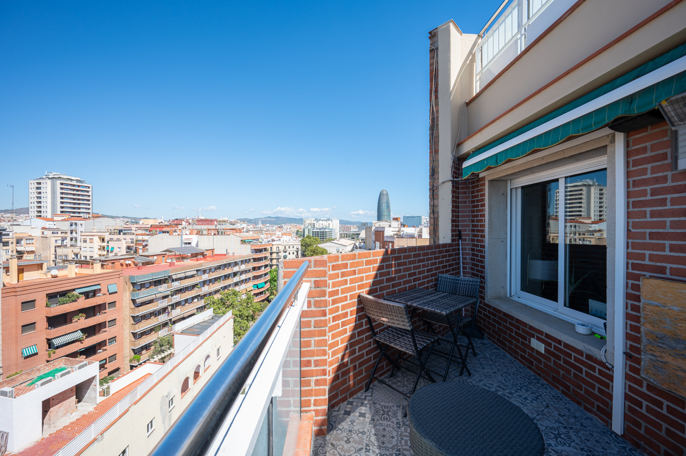 Este ático con 110 m2 construidos interiores y terraza de 28 m2 se sitúa muy cerca de la Plaza Glòries, La Sagrada Familia, el Arc de Triomf y la Gran Via. La zona dispone de todos los comercios y servicios necesarios para el día a día, zonas verdes en los alrededores y una amplia oferta de transporte público.