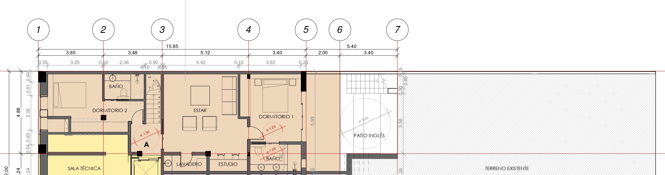 La planta inferior (93,1 m2) tiene una sala de estar con zona de estudio, que podría ser una sala polivalente para cualquier uso, 2 habitaciones dobles en suite con su cuarto de baño privado y un lavadero.