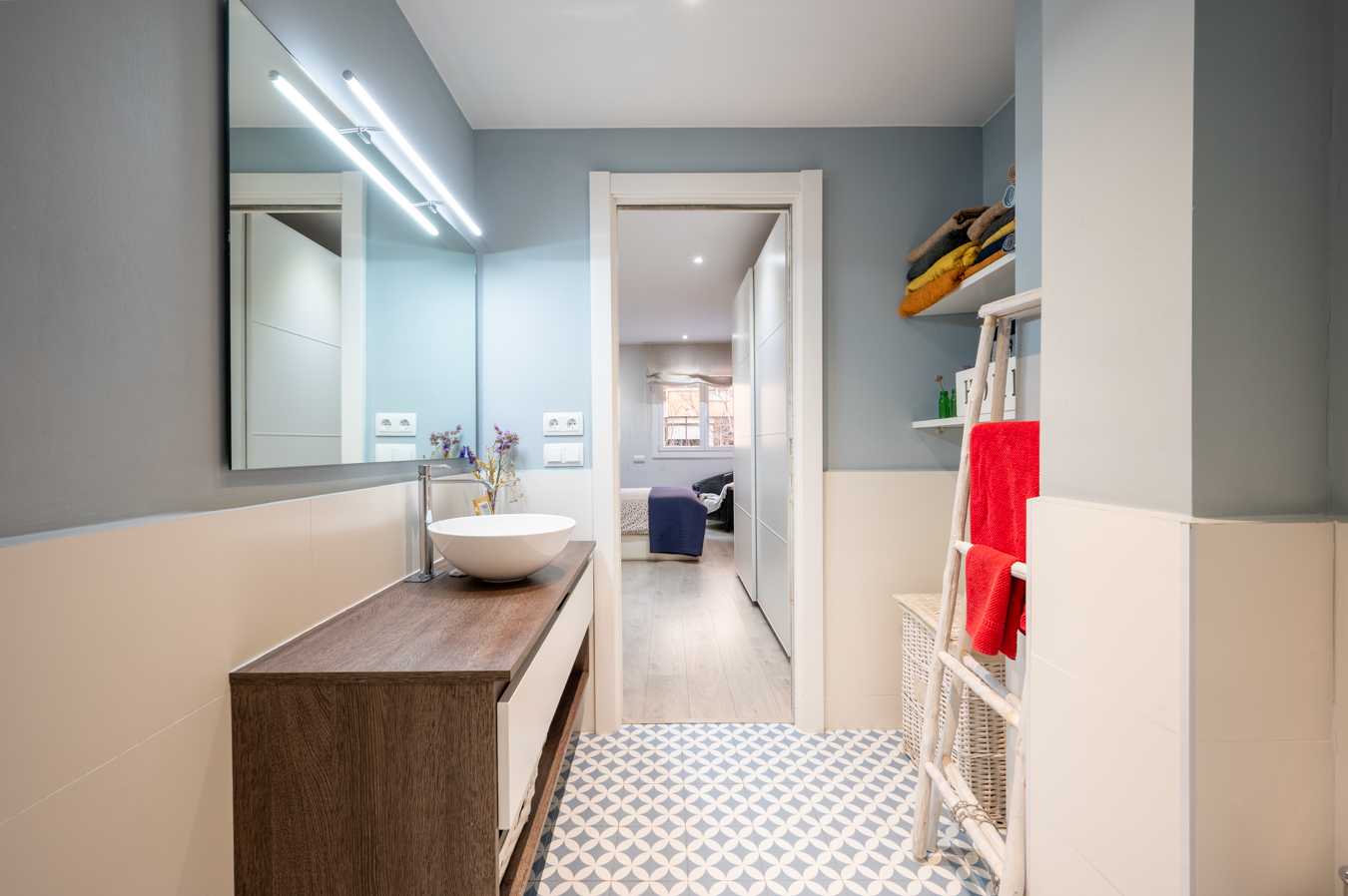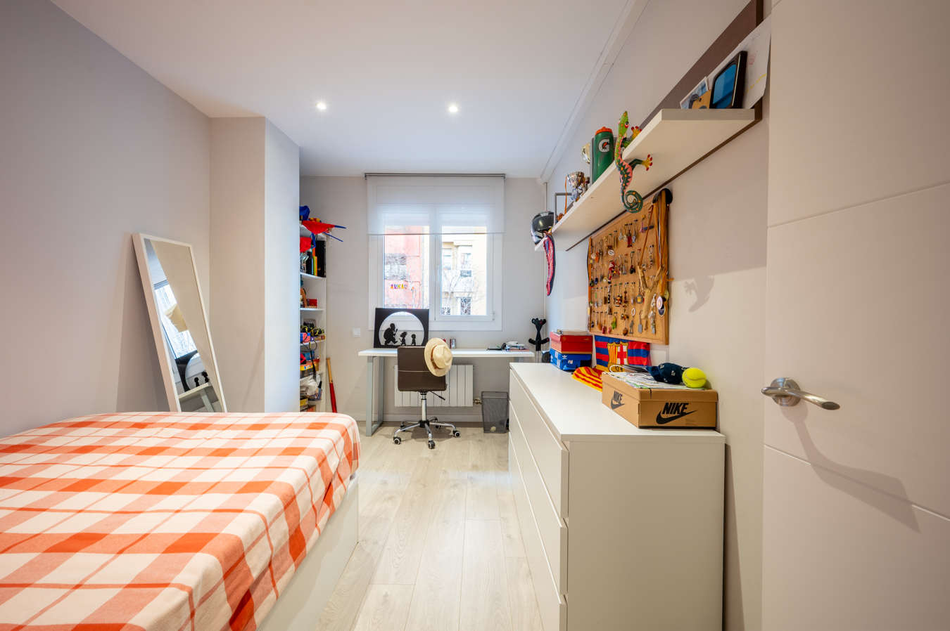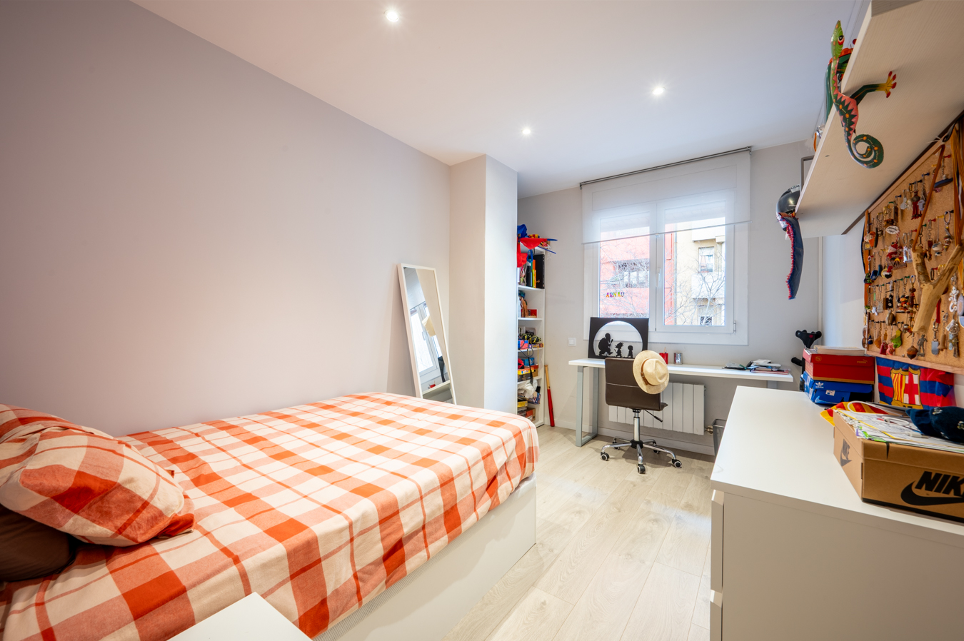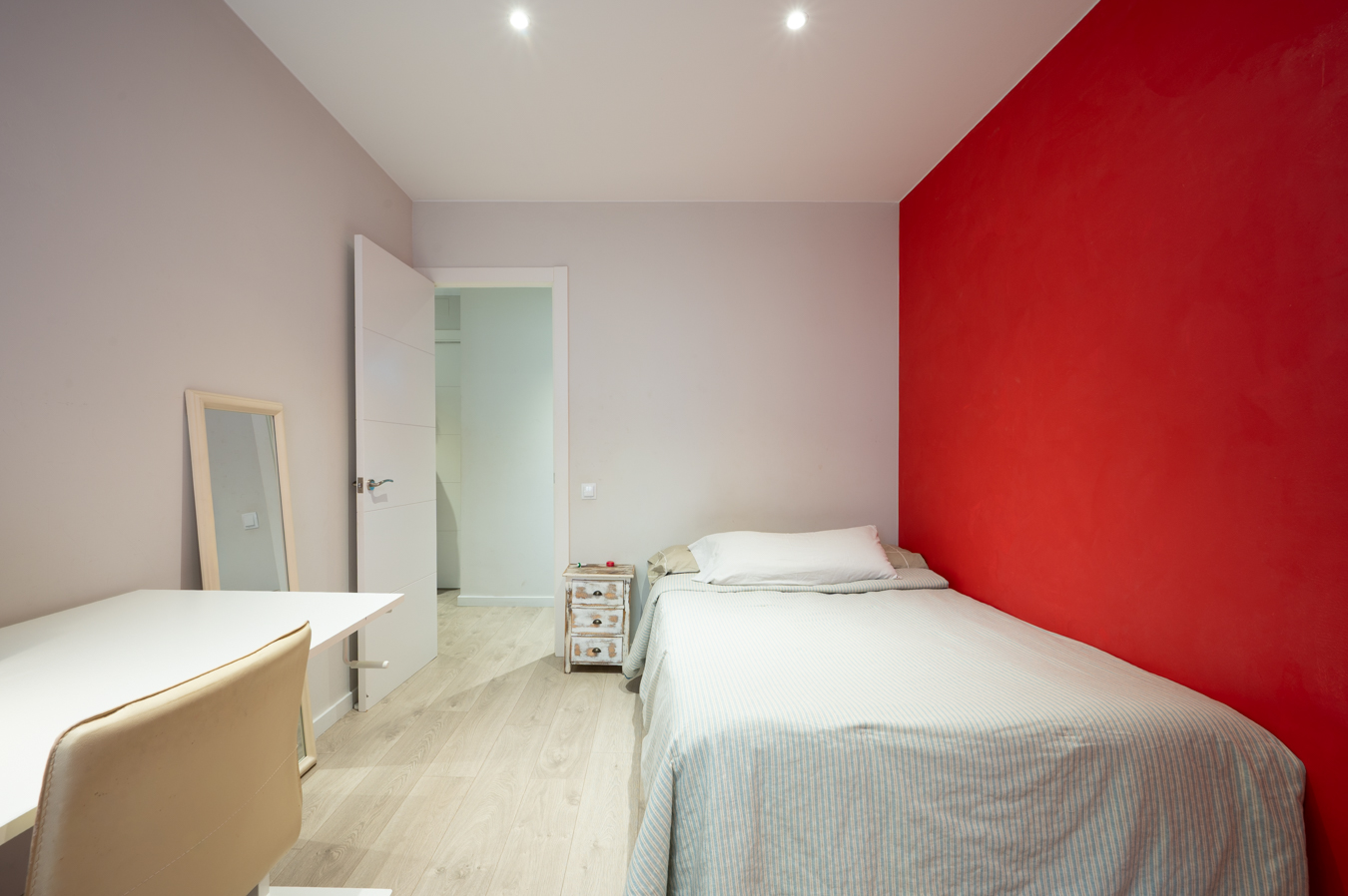 La zona de noche está formada por 3 dormitorios dobles exteriores (uno de ellos en suite con cuarto de baño privado); una habitación individual, que actualmente se usa como vestidor; y un cuarto de baño independiente.