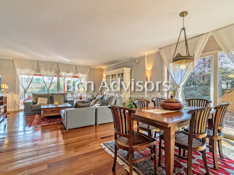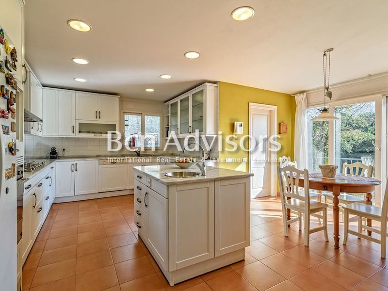 Excelente casa en magnífica ubicación de Teià, con fantásticas vistas al mar y al monte, piscina privada 2 plazas de parking interiores. La casa, de 492 m2 en parcela de 1292 m2, goza de excelente estado y cuenta con 2 plantas totalmente exteriores. Todas sus habitaciones disponen de acceso a la terraza y se distribuyen de la siguiente manera: Planta baja: recibidor, habitación suite + vestidor, habitación ropa, lavadora y plancha, aseo de cortesía, habitación de servicio, cuarto de baño, salón doble, comedor, cocina office, salida a jardín. En la primera planta: 1 suite completa, 3 habitaciones, 1 despacho, 2 baños, trastero y vistas al mar y bosque. Además cuenta con aire acondicionado en el salón, calefacción de gas y orientación Sur, por lo que es muy luminosa.
