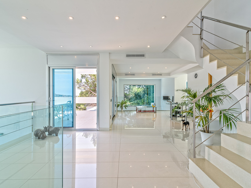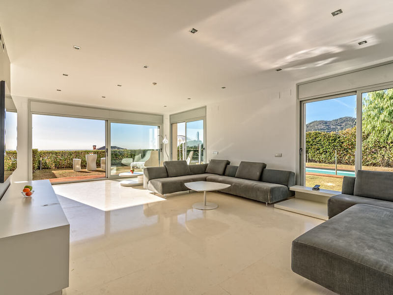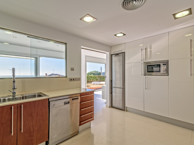 Exclusiva casa de diseño vanguardista seminueva de 300 m² construidos en parcela de 800 m² totalmente plana, dotada de piscina y espectaculares vistas al mar. Consta de amplio salón comedor con home cinema, grandes ventanales con salida al jardín, cocina office de diseño, 4 dormitorios (1 suite con vestidor, 3 dobles), 3 baños, 1 aseo, y apartamento para invitados con suite y baño propio. Esta casa dispone de acabados de máxima calidad, con mobiliario italiano hecho a medida, sistema de domótica, aspiración centralizada y 2 plazas de garaje + 3 adicionales en el exterior.