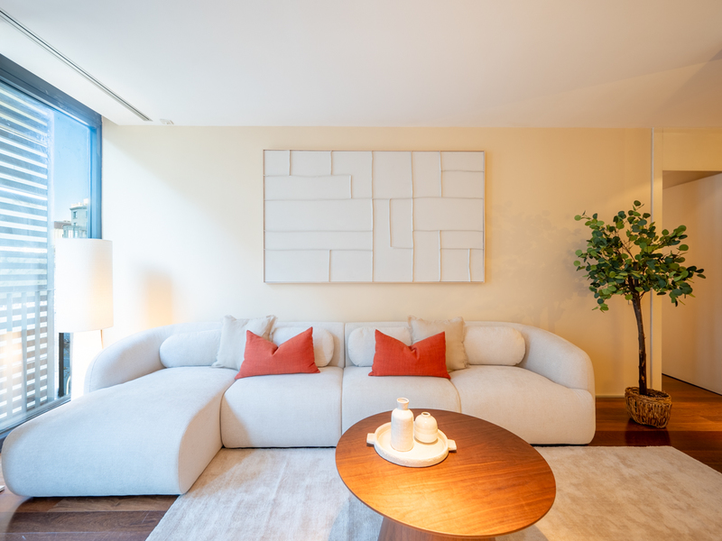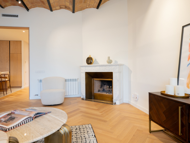 Este magnífico piso, recientemente renovado, destaca por su capacidad para fusionar de forma impecable los detalles arquitectónicos más atemporales con un diseño contemporáneo cuidadosamente estudiado. Se sitúa cerca del Passeig Sant Joan y de La Sagrada Família, una excelente localización en el Eixample. La distribución es cómoda y funcional. El salón con cocina abierta crea un ambiente especial gracias a los techos altos. Dispone de 2 dormitorios: una suite principal con baño propio y armario integrado, y un segundo dormitorio individual junto a un baño completo adicional. La propiedad incorpora también un acogedor altillo que se convierte en un espacio versátil, perfecto como zona de trabajo, rincón de lectura o área de almacenamiento extra. Los acabados destacan por su calidad y carácter. El suelo de mosaico y de microcemento, las paredes de piedra vista y las vigas de madera originales crean una atmósfera cálida, auténtica y llena de personalidad. El piso está equipado con un sistema de aire acondicionado centralizado frío/calor que asegura el máximo confort a lo largo de todo el año. El piso está en la planta baja del edifcio y cuenta con 3 puertas que garantizan un excelente aislamiento acústico y aportan una sensación superior de seguridad. La puerta principal, además, permite la entrada de luz natural sin comprometer en ningún momento la privacidad del interior. Amplia, única y completamente nueva, la vivienda se entrega totalmente amueblada y equipada, lista para entrar a vivir. Su ubicación en una de las zonas más prestigiosas y demandadas de Barcelona, con todos los servicios, comercios y opciones de transporte público que necesitas a pocos pasos, añade un valor incuestionable a esta propiedad que combina diseño, confort y un encanto arquitectónico inigualable. No dudes en contactar con Bcn Advisors para visitar este piso.