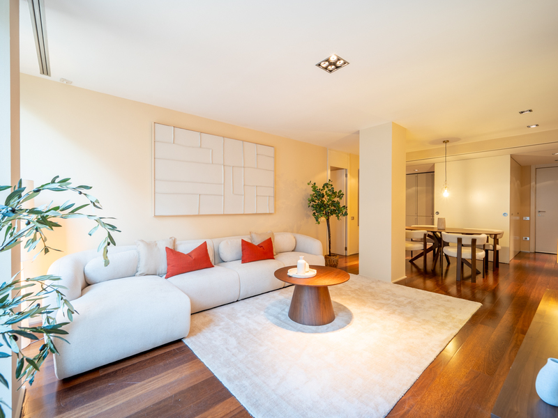 Este maravilloso piso ha sido totalmente reformado con materiales y acabados de máxima calidad, manteniendo la belleza de sus elementos arquitectónicos originales. Está en una de las ubicaciones más cotizadas de la Dreta del Eixample, a solo una manzana de Paseo de Gracia y muy cerca de Rambla Catalunya y la Avenida Diagonal. La vivienda está en la 5ª planta real de una finca regia con ascensor y conseje. Tiene 201 m2 construidos interiores y un balcón de 4,35 m2 (221 m2 en Catastro, incluyendo elementos comunes). La impresionante zona de día de 60 m2 es un espacio que se adapta a todas tus necesidades para ofrecerte el máximo confort en tu día a día. Es muy tranquila porque da al patio de manzana y luminosa gracias a su altura. Permite diferenciar los espacios de salón y comedor; asimismo, dispone de 2 galerías para crear un ambiente más distendido. La cocina abierta está totalmente equipada con electrodomésticos de alta gama (incluyendo vinoteca) y dispone de una mesa alta. La zona de día se completa con un estudio abierto, ideal para instalar un despacho y teletrabajar, y un lavadero al lado de la cocina. La zona de noche está presidida por una impresionante habitación en suite con walk-in closet, cuarto de baño privado y acceso al balcón. Además, encontramos una habitación doble con acceso al balcón, otra doble interior y un dormitorio mediano interior. Por último, hay 2 cuartos de baño independientes con grifería italiana de Zanetti Chini, uno con bañera y el otro con ducha. Los acabados y el interiorismo de este piso son absolutamente fabulosos, destacando la preciosa bóveda catalana en el techo del salón y de las habitaciones principales. El piso está equipado con suelos de parquet de espiga de madera natural, aire acondicionado por conductos, radiadores de gas natural y armarios empotrados. El precio incluye también un trastero en la azotea del edificio. Los alrededores de este piso te ofrecen toda clase de servicios, tiendas, boutiques de primeras marcas, restaurantes y opciones de transporte público. Un entorno bellísimo en el que los edificios modernistas transmiten la esencia más pura de vivir en Barcelona. No dudes en contactar con Bcn Advisors para visitar esta propiedad.
