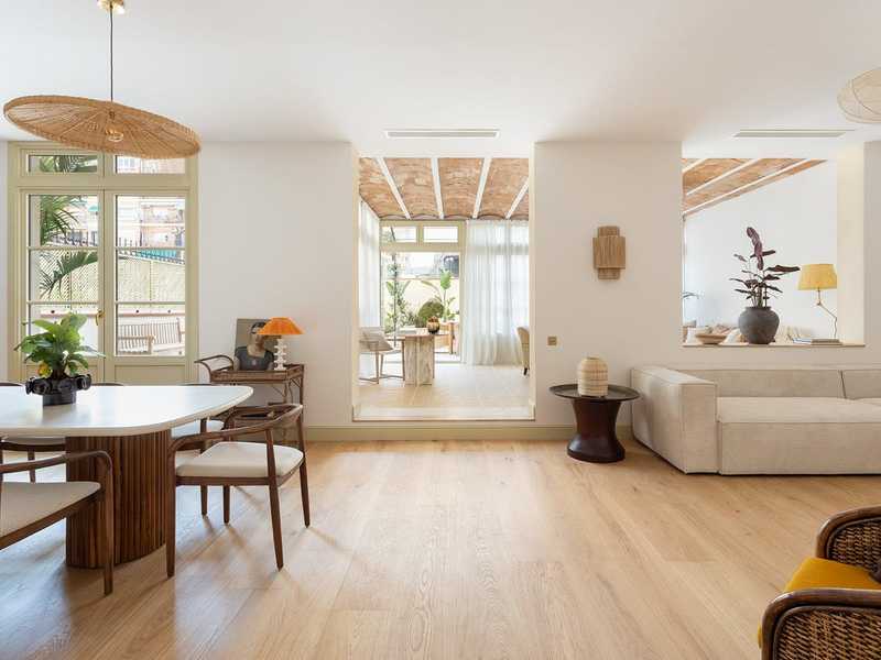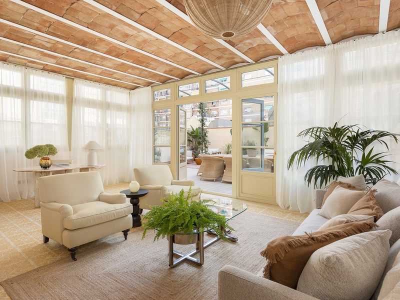 Este espléndido piso de 200 m2 construidos interiores con terraza de 95 m2 es una joya en pleno Paseo Sant Joan de Barcelona, una de las áreas más codiciadas de la ciudad. Su reforma de lujo ha incorporado el confort moderno a la belleza de los elementos originales como suelos hidráulicos y los techos altos con bóveda catalana y vigas de madera. La vivienda se sitúa en la planta Principal de una finca regia de finales del siglo XIX. Un amplio recibidor nos da la bienvenida y divide a ambos lados las zonas de día y de noche. El salón-comedor con cocina semiabierta es amplísimo, muy luminoso y el lugar perfecto para tu día a día. Éste da paso a una galería de 28 m2 con suelos hidráulicos, un espacio ideal para crear un ambiente más distendido. Al lado de la cocina hay un lavadero y un patio de 4,5 m2. Desde la galería o el salón accedemos a la espectacular terraza, que da al patio de manzana. Es muy tranquila y todo un oasis en medio de la gran ciudad, que te permitirá disfrutar al aire libre de casi todo lo que imagines. Desde reuniones con amigos y familiares hasta juegos, o simplemente relajarte. La zona de noche tiene 3 habitaciones dobles exteriores con vistas al Paseo Sant Joan y armarios. La maravillosa master suite dispone de cuarto de baño con ducha y bañera. Asimismo, hay una junior suite con cuarto de baño propio. El tercer dormitorio tiene al lado un cuarto de baño independiente. Por último, hay un aseo de cortesía en la entrada de la vivienda. El piso está equipado con materiales y acabados de la máxima calidad, suelos de parquet, aire acondicionado por conductos, calefacción por suelo radiante, nueva carpintería con excelente aislamiento acústico y térmico, y electrodomésticos. El salón-comedor tiene techos con volta catalana y las habitaciones, con vigas de madera a la vista. El edificio tiene ascensor. Esta vivienda se sitúa en el animado Passeig Sant Joan, que dispone de una amplia oferta comercial y de restauración. Está muy cerca del Arc de Triomf y del Parc de la Ciutadella, por lo que podrás disfrutar de la gran zona verde de Barcelona. Los alrededores disponen de todos los servicios y opciones de transporte público que necesitas. Todo ello, a solo 15 minutos andando del centro de la ciudad, Plaza Catalunya y el Paseo de Gracia. No dudes en contactar con Bcn Advisors para visitar esta propiedad. * El piso está siendo reformado actualmente. Las fotografías corresponden al piso de al lado, que es igual y ha sido reformado por el mismo propietario.