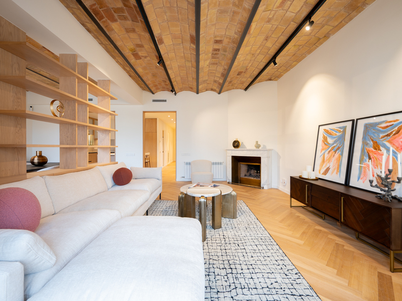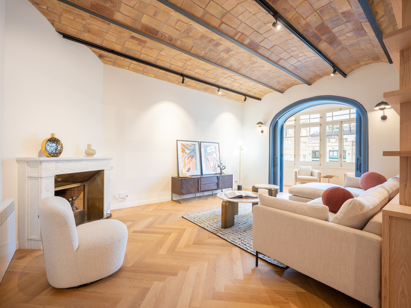 En una elegante finca modernista catalogada de principios del siglo XX, ubicada en la zona de Balmes con Consell de Cent, se encuentra esta exclusiva vivienda en proceso de rehabilitación integral de alto nivel, conservando sus elementos arquitectónicos originales. La propiedad mantiene techos de 3,79 metros de altura, pavimentos hidráulicos originales (mosaico Nolla), carpinterías restauradas y detalles modernistas que aportan carácter y autenticidad, combinados con un diseño contemporáneo y acabados de máxima calidad. La propiedad dispone de 205,69 m² construidos de vivienda más 17,14 m² de altillo, sumando un total de 222,83 m² construidos y 180,57 m² útiles. La distribución ha sido cuidadosamente diseñada para ofrecer amplitud y funcionalidad, con un salón-comedor de 37,34 m², cocina independiente de 15,62 m² con península, dormitorio principal de 21,3 m² con baño en suite de 14 m², un segundo dormitorio doble de 17,97 m², un dormitorio de invitados, despacho independiente y tres baños completos. La vivienda cuenta además con galería y balcón exterior de 3,5 m2, aportando luz y ventilación natural. La reforma contempla la recuperación y puesta en valor de los elementos originales junto con la incorporación de climatización por conductos, iluminación LED integrada, cocina a medida con electrodomésticos de alta gama y baños con acabados contemporáneos de primeras marcas. El resultado será una vivienda que combina el encanto clásico del Eixample con el confort actual. La finalización de las obras está prevista para finales de marzo o principios de abril de 2026, ofreciendo la oportunidad de adquirir una propiedad única en una de las zonas más consolidadas y demandadas del centro de Barcelona. Nota: La superficie útil de la vivienda podrá variar en función de los ajustes que puedan surgir durante la ejecución de las obras. Las fotografías mostradas corresponden a un inmueble del mismo vendedor situado en la finca colindante y se presentan a efectos orientativos.