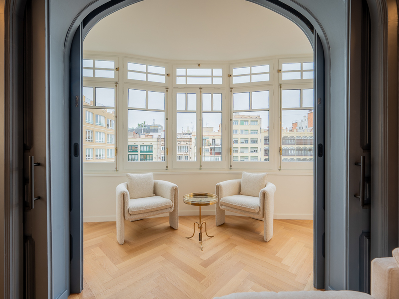 Este magnífico y amplio piso goza de una ubicación privilegiada en pleno Eixample, a solo dos calles del Paseo de Gracia y a 10 minutos andando de Plaza Catalunya. Está en la tercera planta real de una finca regia con pocos vecinos, que dispone de ascensor, conserje y terrado comunitario. La propiedad tiene 203 m2 construidos incluyendo elementos comunes según Catastro. El piso tiene 175 m2 construidos con una terraza de 10,6 m2 y dos balcones. Se entregará reformado a estrenar y amueblado, combinando la esencia de la arquitectura clásica barcelonesa con el confort contemporáneo, conservando los elementos originales que le confieren un carácter histórico único. La zona de día es un amplio espacio continuo bañado de luz natural en el que los ambientes fluyen. El salón-comedor tiene acceso a dos balcones que dan a la calle, mientras que la cocina, totalmente equipada con electrodomésticos, incluye una isla central y una zona office para desayunar o tomar algo. Además, hay un lavadero. La zona de noche tiene 4 habitaciones y 3 cuartos de baño. El dormitorio principal en suite con cuarto de baño privado tiene acceso a la tranquila terraza, que da al patio de manzana. Un lugar ideal para relajarse y escapar de las preocupaciones del día a día. A su lado hay 2 dormitorios dobles, uno de ellos con salida a la terraza, que comparten un cuarto de baño completo. En la parte central del piso hay una habitación mediana interior, que podría ser otro dormitorio o un despacho, y un cuarto de baño. Destaca en la reforma integral la elección de materiales y acabados de alta calidad, que la distinguen claramente de otras propiedades de la zona. Las carpinterías, tanto exteriores como interiores, se han renovado por completo y cuidando cada detalle. Fabricadas en madera, aportan calidez y un valor añadido al conjunto. Las exteriores mantienen el diseño original, incorporando cristales bajoemisivos y cámaras aislantes que reducen el ruido y las variaciones térmicas, creando espacios confortables. Las interiores, ya sean abatibles o correderas tipo Krona, llegan hasta el techo. Los muebles de baño se han diseñado específicamente para cada estancia y los armarios, hechos a medida, presentan interiores en textil o madera con iluminación LED. También se han conservado o restaurado techos ornamentados o con volta catalana, vigas de madera o hierro, paredes con molduras o baldosas decorativas, y suelos de parquet o baldosa cuidadosamente seleccionados, logrando un conjunto equilibrado y elegante. Los alrededores de esta vivienda te ofrecen todo lo necesario para el día a día y disfrutar al máximo de Barcelona. Servicios, tiendas de barrio, boutiques de primeras marcas, centros comerciales, transporte público, instituciones de prestigio, cafés, restaurantes, teatros, ocio, cultura... lo tendrás todo muy cerca. No dudes en contactar con Bcn Advisors para visitar este piso. * Las imágenes son renders del estado final tras la reforma, que está previsto que acabe en marzo de 2026. Las fotografías del edificio son reales.