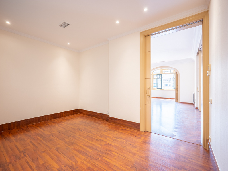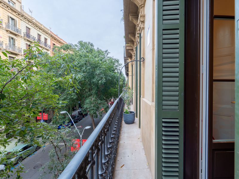 Este piso reformado a estrenar de 130 m2 y 3 habitaciones disfruta de una ubicación envidiable en la parte superior de la Dreta del Eixample, al lado del Paseo Sant Joan y la Avenida Diagonal. Se sitúa en la 2ª planta real de una finca regia en chaflán, por lo que es muy luminoso y ofrece vistas despejadas de la ciudad. Un amplio recibidor con armario nos da la bienvenida al piso. A mano izquierda accedemos al fantástico salón-comedor con cocina integrada. Es un especio lleno de luz natural, con 3 ventanales y 2 balcones que tienen vistas al Paseo Sant Joan. La zona de noche dispone de 3 dormitorios. La habitación principal es en suite con cuarto de baño propio y una apacible galería orientada al patio de manzana, que se puede usar como escritorio. Las otras 2 habitaciones (una doble y otra individual) dan al patio de luces del edificio y comparten un cuarto de baño completo independiente. Además, hay un moderno vestidor independiente con puertas correderas de cristal frente a una de las habitaciones. El piso mantiene elementos originales como los suelos hidráulicos en el recibidor y la cocina, los techos altos de 3,3 metros con bóveda catalana y vigas de madera en el salón y molduras y rosetones en el resto. El piso está equipado con suelos de parquet de madera natural en espiga, suelos porcelánicos en baños, electrodomésticos integrados Bosch de alta gama, aire acondicionado por conductos y calefacción por radiadores. El edificio tiene ascensor. Los alrededores de esta vivienda disponen de todos los comercios y servicios necesarios para el día a día, boutiques de la Avenida Diagonal, amplia oferta de restaurantes en el Paseo Sant Joan y excelente conexión mediante transporte público. No dudes en contactar con Bcn Advisors para visitar esta vivienda.