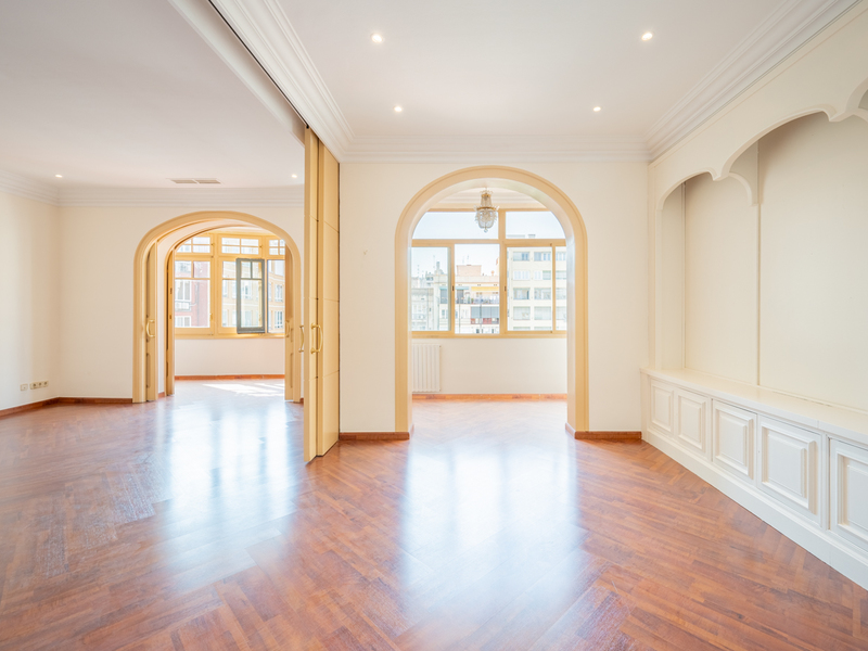 Este exclusivo piso reformado a estrenar destaca por la excelente combinación de elementos originales con materiales y acabados de excelente calidad. Se sitúa en el barrio de Sant Antoni, cerca de Gran Via de les Corts Catalanes, lo que garantiza una amplia oferta de servicios, comercios y transporte público en los alrededores, muy cerca del centro de Barcelona. El piso se sitúa en la 2ª planta real de una finca regia en chaflán y tiene 162 m2 construidos. La zona de día, con más de 15 metros lineales, es totalmente exterior con orientación sur y recibe una impresionante luz natural que llena de alegría el ambiente. Este amplio espacio une salón, comedor y cocina abierta con isla. Además, tiene acceso a un balcón con vistas despejadas y a una preciosa galería acristalada, perfecta para crear un ambiente diferenciado. La zona de noche dispone de 2 dormitorios dobles interiores muy tranquilos, uno de ellos en suite con cuarto de baño propio, y un segundo cuarto de baño independiente. Además, se podría crear una tercera habitación aprovechando el amplio espacio que ofrece actualmente el salón, que sería exterior a calle. La reforma ha sido realizada por el prestigioso estudio de arquitectura Alonso, Balaguer y Arquitectos Asociados, uno de los más importantes de Barcelona y que participa en la remodelación del Camp Nou. Se han mantenido elementos originales como la bóveda catalana en los techos y parte de los suelos hidráulicos del salón, y pared de ladrillo visto en el recibidor. El piso está equipado con suelos de parquet acabado en madera natural de roble, aire acondicionado frío/calor por splits y carpintería exterior de aluminio con vidrio de altas prestaciones térmicas y acústicas. No dudes en contactar con Bcn Advisors para conocer este piso. En el Eixample, la arquitectura icónica se combina con la modernidad. Nuestros pisos de lujo en venta en el Eixample, te permiten disfrutar de una vida de lujo en un entorno histórico. Explora la elegancia atemporal de Barcelona desde la comodidad de tu propio hogar.