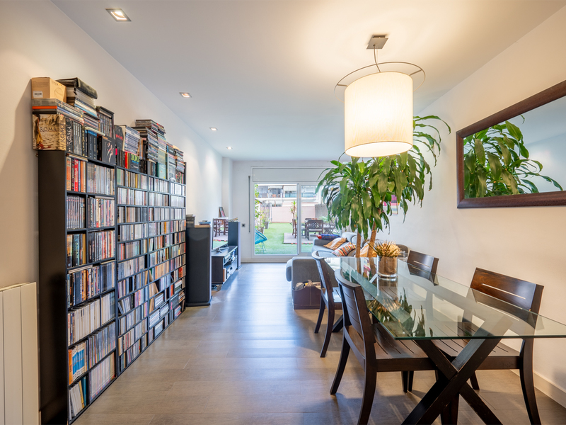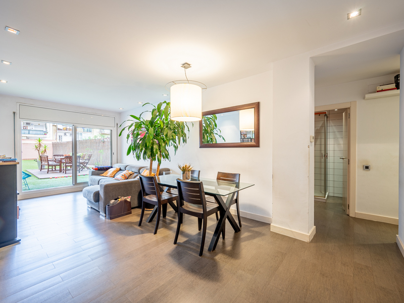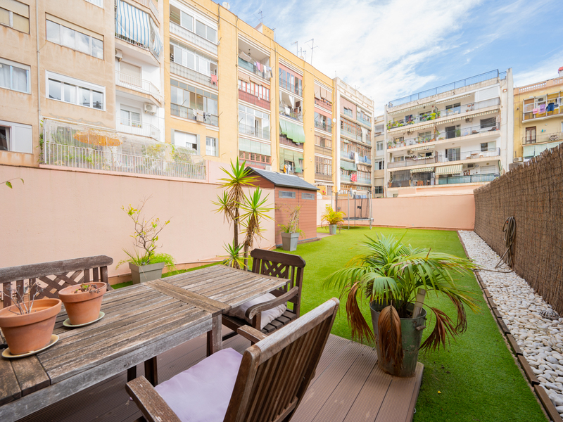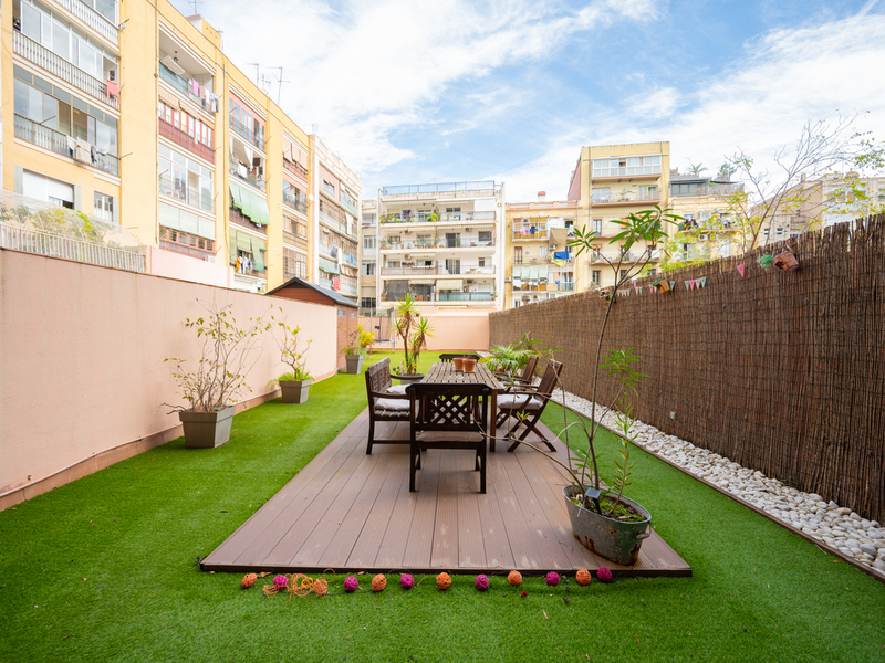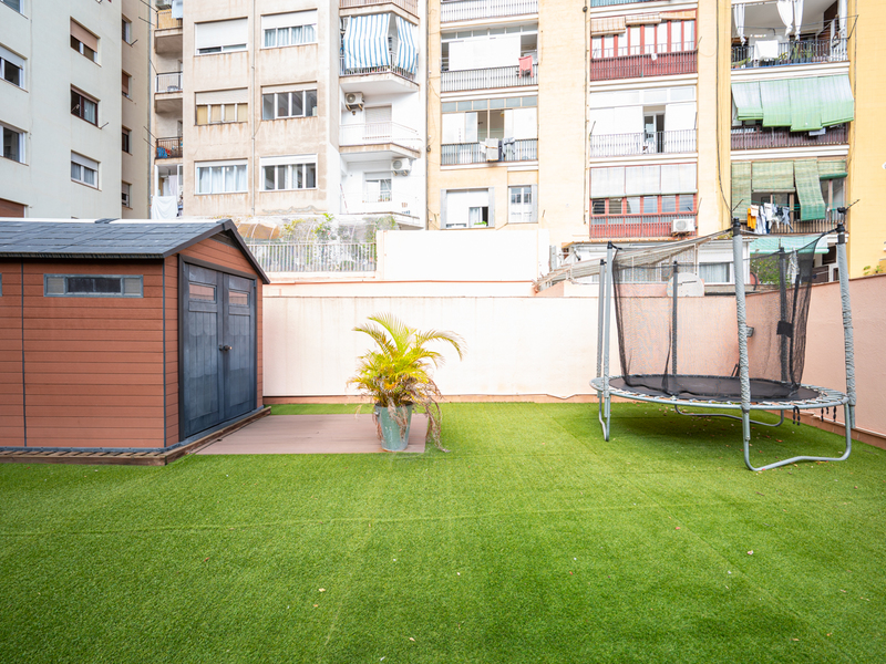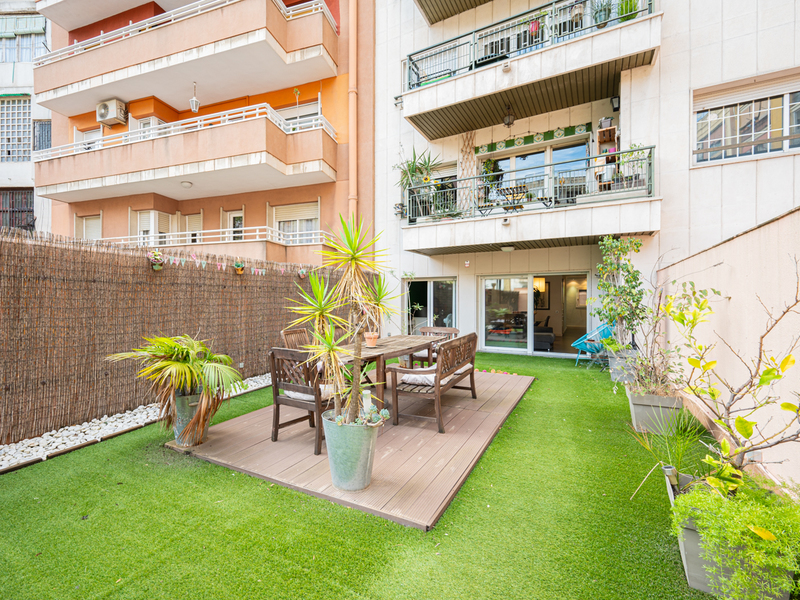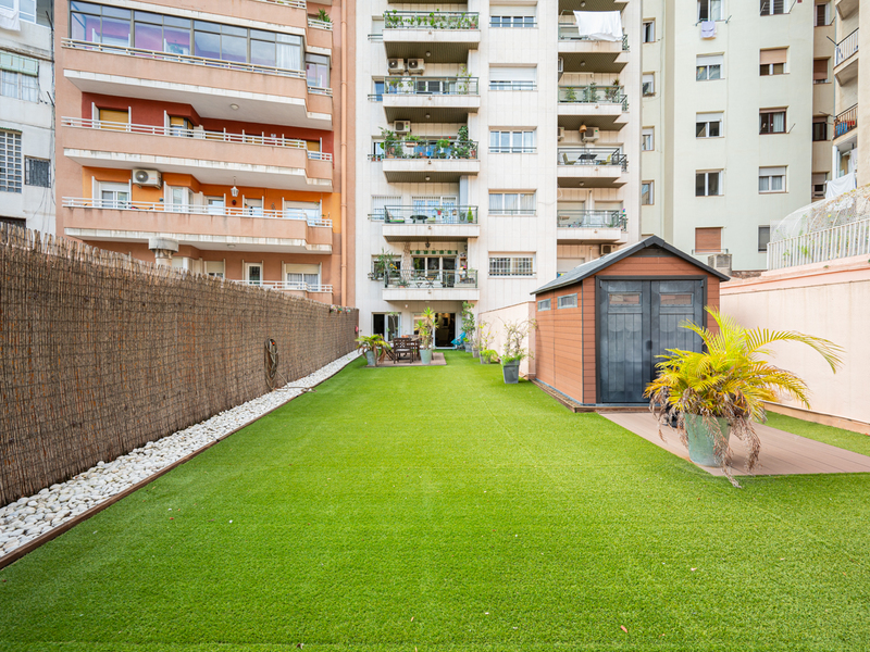 Este maravilloso piso te ofrece una magnífica y tranquila terraza de 150 m2 para disfrutar al aire libre de animadas reuniones, comidas, juegos o simplemente relajarte. Se sitúa en el Eixample, al lado del Paseo Sant Joan, rodeado de numerosos comercios, servicios, restaurantes y opciones de transporte público. La vivienda, con 86 m2 construidos interiores, es muy tranquila, ya que da al patio de manzana con orientación este. Se sitúa en la primera planta de un edificio con 2 ascensores y conserje. La distribución de la vivienda es muy cuadrada y aprovecha al máximo el espacio. El piso nos da la bienvenida con un amplio recibidor abierto con una moderna librería incorporada. El salón-comedor es grande y luminoso, con acceso directo a la terraza, que tiene césped artificial y una caseta para guardar bicicletas y otros objetos. La cocina está equipada con placa vitrocerámica de inducción, frigorífico Smeg y lavavajillas Bosch panelados, encimera Silestone gris y muebles blancos lacados. Además, hay un lavadero. La zona de noche tiene 3 dormitorios y 2 cuartos de baño. El dormitorio principal es en suite con cuarto de baño propio con bañera y da al patio de luces del edificio. La segunda habitación es doble con armarios empotrados y tiene salida a la terraza. La tercera habitación es individual y también tiene armarios empotrados. El piso está equipado con suelos de porcelanato gris oscuro, calefacción de gas natural y puertas blancas lacadas. No dudes en contactar con Bcn Advisors para visitar este piso.