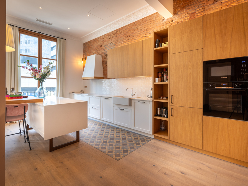 Este precioso piso reformado en 2023 se sitúa en la mejor zona de la Vila de Gracia. La reforma, de altísimo nivel y eficiencia energética, mantuvo y realzó los elementos originales, como techos con volta catalana, suelos hidráulicos, paredes de ladrillo visto y carpintería. Se trata de una espectacular vivienda que además te ofrece una gran terraza de 70 m2 para disfrutar como quieras al aire libre. Este piso tiene 140 m2 construidos interiores. La zona de día es un amplio espacio que integra salón, comedor, cocina abierta (con una despensa independiente enfrente) y una preciosa galería que tiene salida a la estupenda terraza de 70 m2, que incorpora trastero y lavadero. Es muy soleada debido a su perfecta orientación sureste y a que los edificios de alrededor son bajos. Además, es tranquila porque da al patio de manzana interior. Sin duda, desearás estar en ella para reunirte con amigos y familiares, comer al aire libre o simplemente descansar bajo el agradable clima mediterráneo de Barcelona. La zona de noche es versátil y podría acoger hasta cinco habitaciones. Actualmente, tiene 3 habitaciones dobles (2 exteriores a calle y una interior); una estancia actualmente abierta que se usa como zona de juegos y que se podría convertir en cuarto dormitorio o en segundo salón; y una estancia en la galería con acceso directo a la terraza, ideal para oficina o zona de trabajo. Por último, hay 2 cuartos de baño con ventilación natural y suelo hidráulico original conservado, uno con ducha y el otro con bañera, y con ducha higiénica en los sanitarios. La reforma fue trabajada al detalle con la máxima calidad y ahorro energético (eficiencia C y B, ya que toda la climatización es por aerotermia, con lo que, además, la vivienda no hace uso de gas), incorporando el confort actual al encanto tradicional del piso. Se restauraron la carpintería original, la pared de obra vista y los suelos hidráulicos. Asimismo, se mantuvieron los techos altos de 3,3 metros con combinación de molduras y bóveda catalana. El piso dispone de calefacción y refrigeración por suelo radiante, aire acondicionado centralizado por conductos, suelos de parquet de roble natural de lama ancha combinados con hidráulicos, 6 ventiladores marca Faro, muebles de cocina Rekker, electrodomésticos Siemens de alta gama y sistema de osmosis. Este piso se sitúa en la primera planta de una finca regia con ascensor. Además, el edificio tiene una terraza comunitaria en la azotea con espectaculares vistas de Barcelona y La Sagrada Familia. La vivienda se sitúa en un entorno ideal, lejos del bullicio de las zonas más comerciales del barrio de Gracia pero con todos los comercios de proximidad muy cerca. Está a pocos pasos del Paseo de Gracia, la Avenida Diagonal y el Paseo Sant Joan, con una gran oferta de restauración de alto nivel y la comodidad de una amplia oferta de transporte público, junto a todos los servicios necesarios para tu día a día. Además, hay una amplia oferta de parkings públicos y privados a la vuelta de la esquina. Este piso es una oportunidad extraordinaria de adquirir una pieza única con características muy cotizadas y muy difíciles de encontrar en el barrio de Gracia: una espectacular reforma, elementos originales y una impresionante terraza. No dudes en contactar con Bcn Advisors para visitar este piso.
